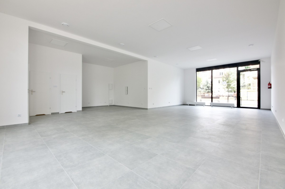 Lokal w większości wykończony: na podłodze płytki, dużo gniazdek elektrycznych, jest oświetlenie, WC z zamontowanym podwieszanym sedesem gotowe do położenie kafelków.