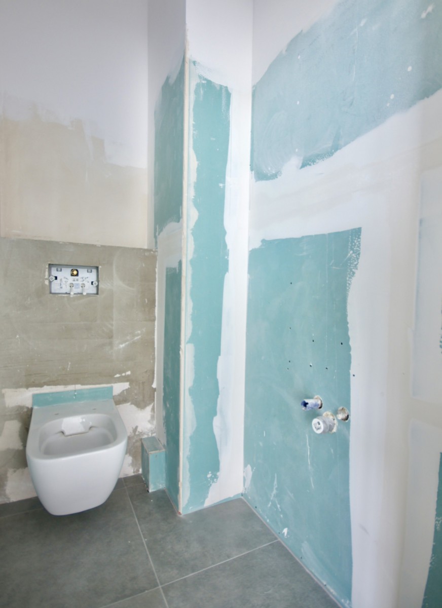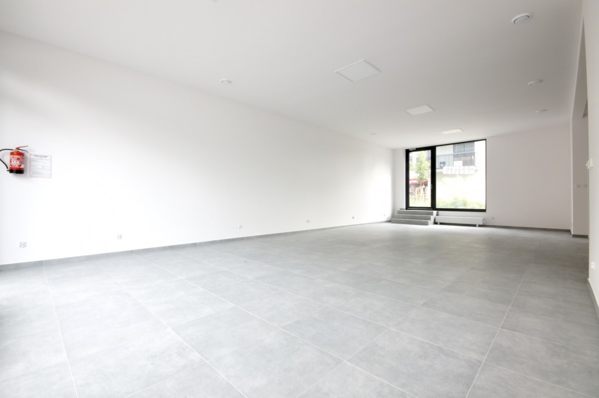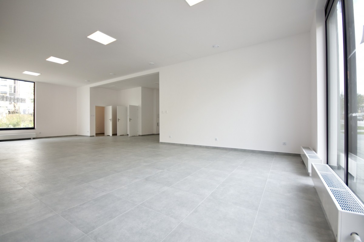 Lokal wykończony: na podłodze płytki, dużo gniazdek elektrycznych, jest oświetlenie. WC z zamontowanym podwieszanym sedesem gotowe do położenie kafelków.