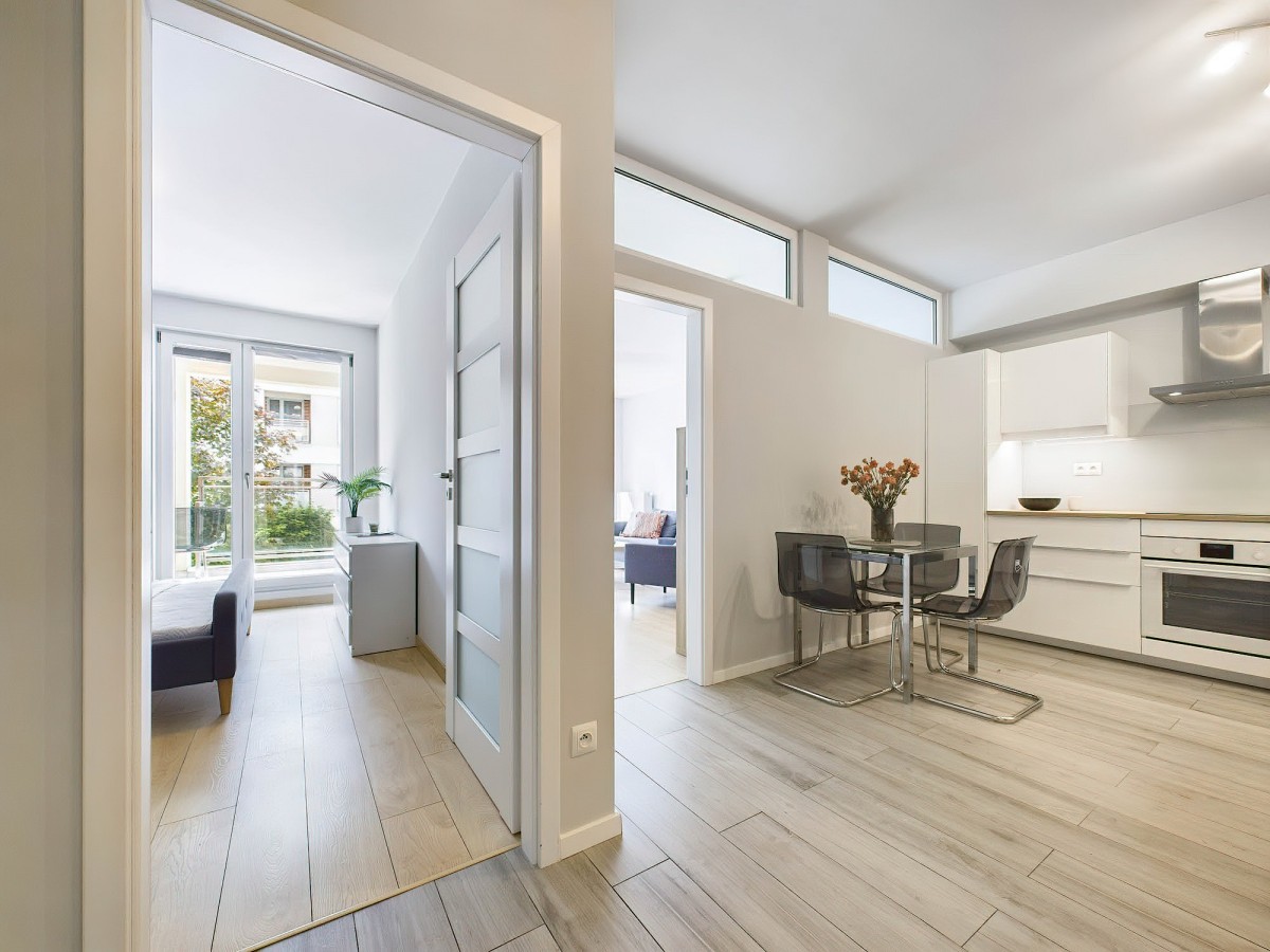 Funkcjonalne, nowoczesne dwa pokoje z oddzielną kuchnią oraz balkonem z widokiem na ciche patio. Świeżo odmalowane.