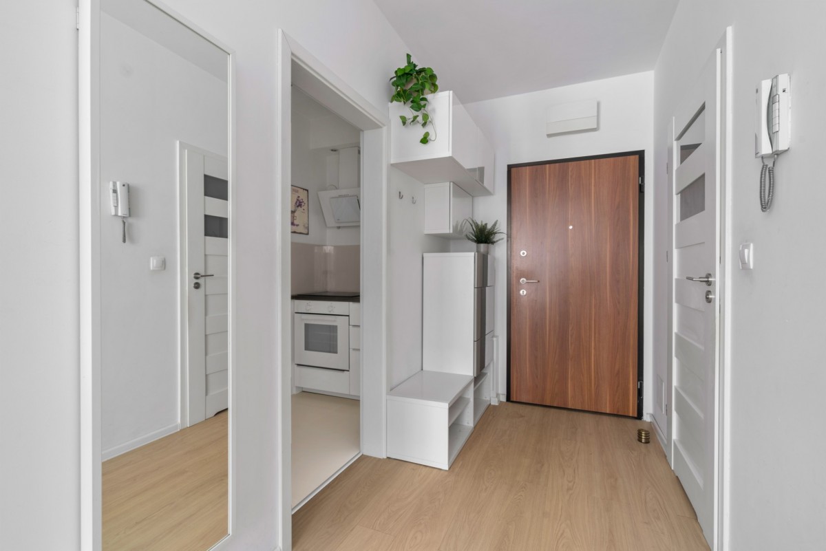 Pomimo bliskości infrastruktury kolejowej, mieszkanie jest ciche i komfortowe – nowoczesna konstrukcja budynku oraz dobra izolacja sprawiają, że odgłosy pociągów nie są słyszalne w codziennym użytkowaniu.