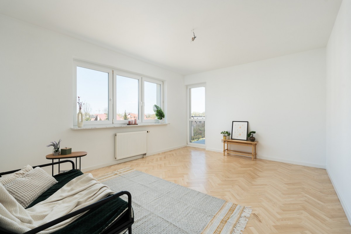Mieszkanie o przemyślanym układzie, gotowe do wyposażenia przez nowego właściciela według własnych potrzeb.