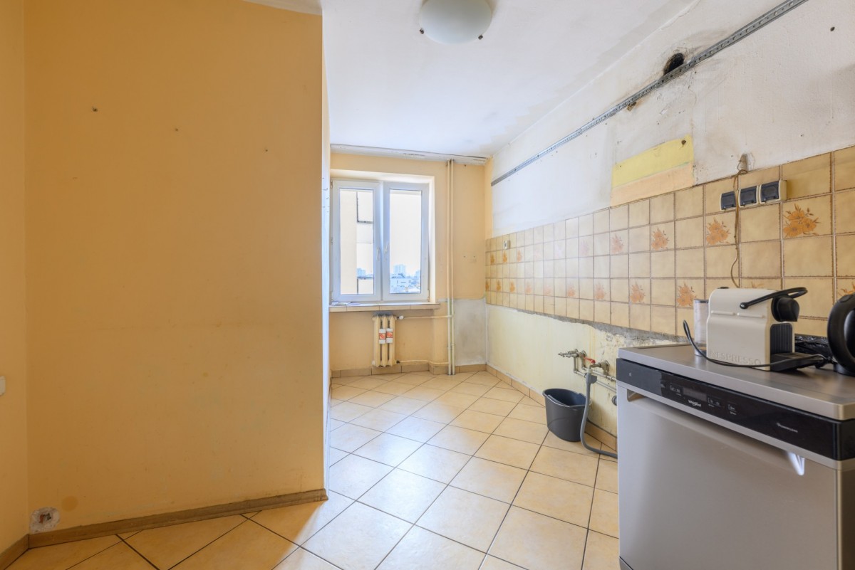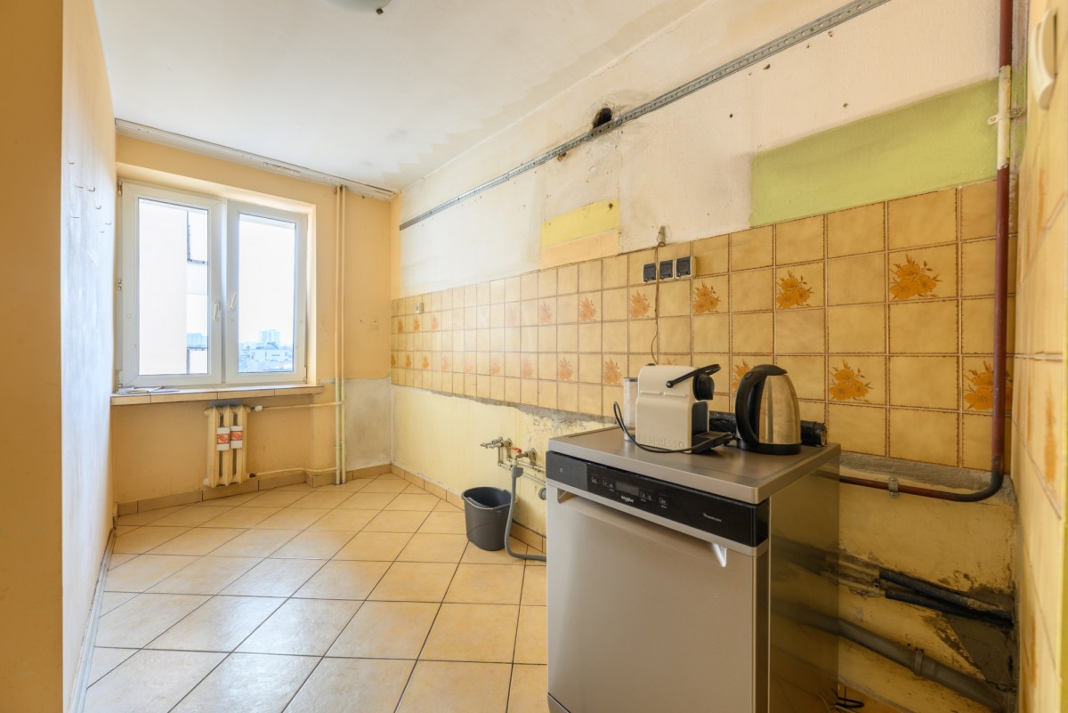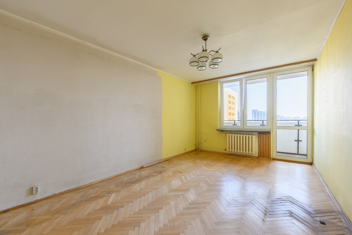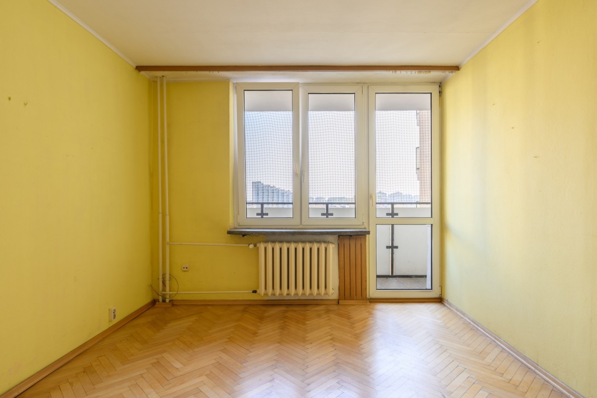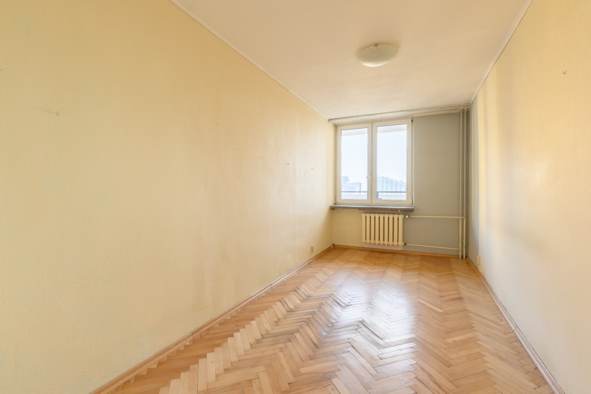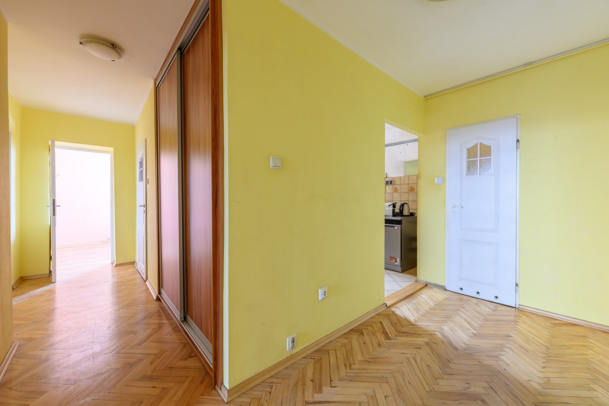 Mieszkanie znajduje się na 6. piętrze 10-piętrowego budynku z dwiema windami. Posiada dwustronną ekspozycję wschód-zachód, dzięki czemu jest jasne, dobrze doświetlone i oferuje widok na miasto oraz okoliczną zieleń. Lokum składa się z 3 pokoi, osobnej kuchni z oknem, łazienki z prysznicem, osobnego WC oraz garderoby. Do mieszkania przynależy balkon, piwnica do wyłącznego korzystania oraz komórka współdzielona z sąsiadem na tym samym piętrze. Mieszkanie do generalnego remontu z dużym potencjałem aranżacyjnym – idealne dla osób chcących stworzyć wnętrze według własnego stylu życia.