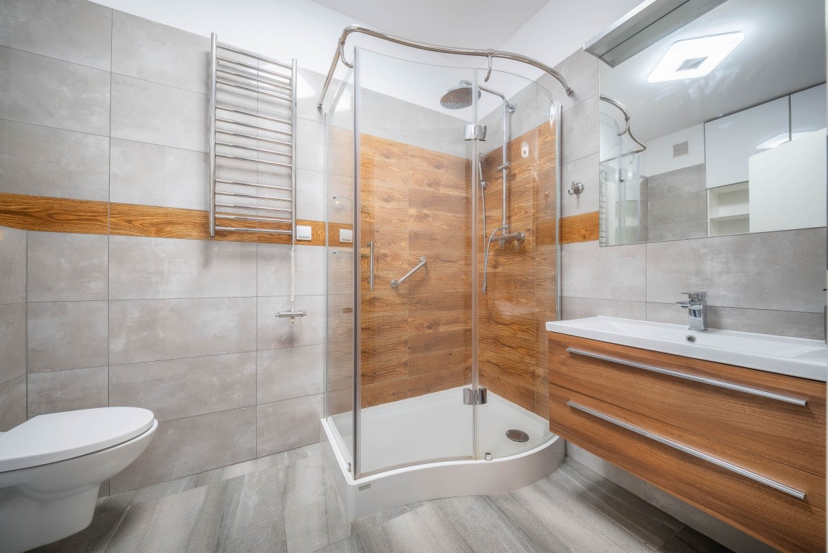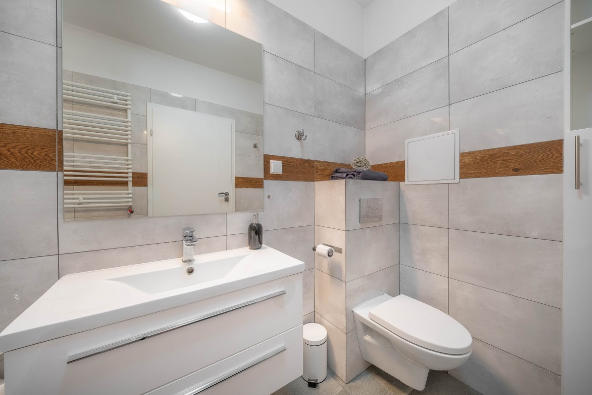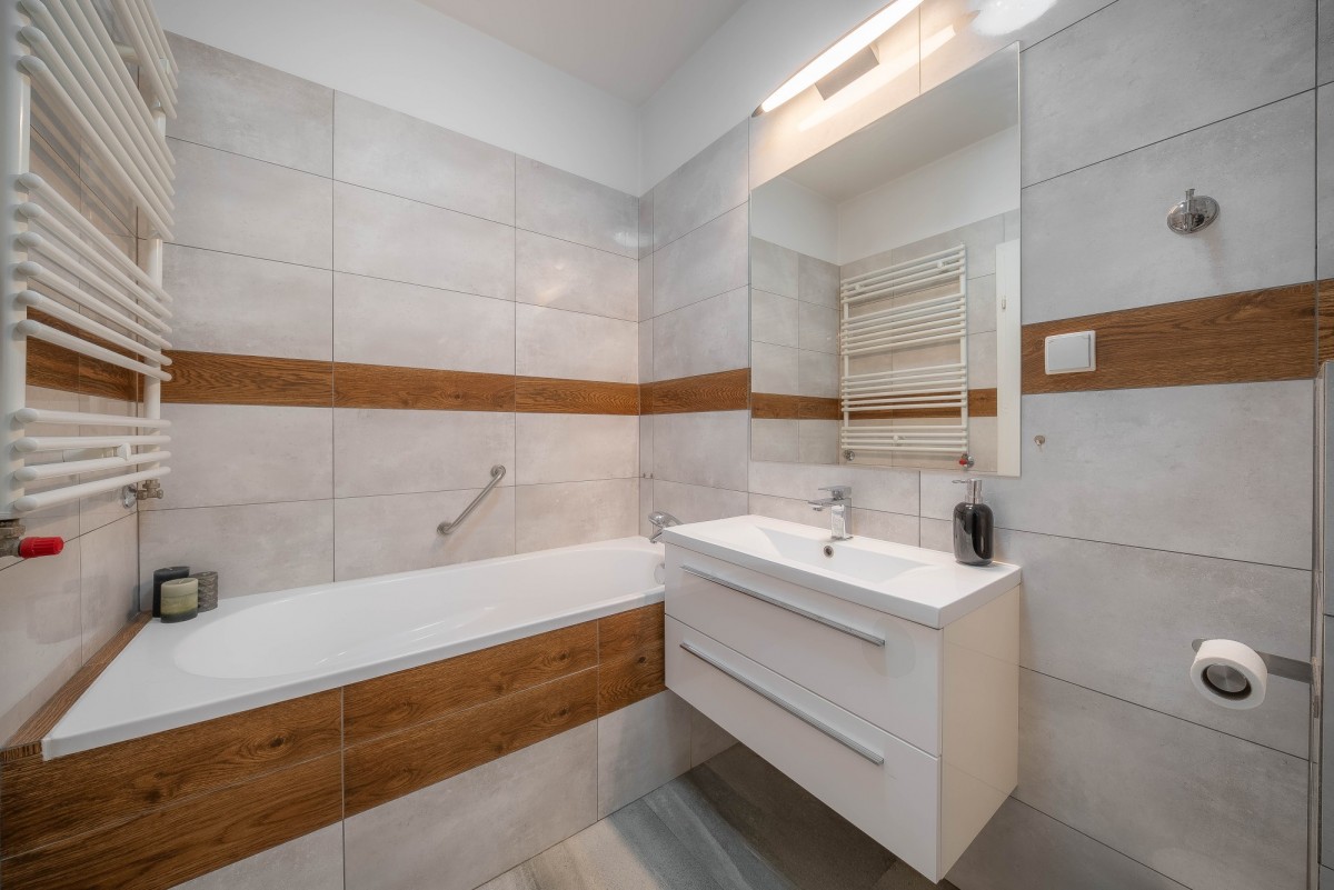 Dwie łazienki – jedna z wanną, druga z prysznicem.