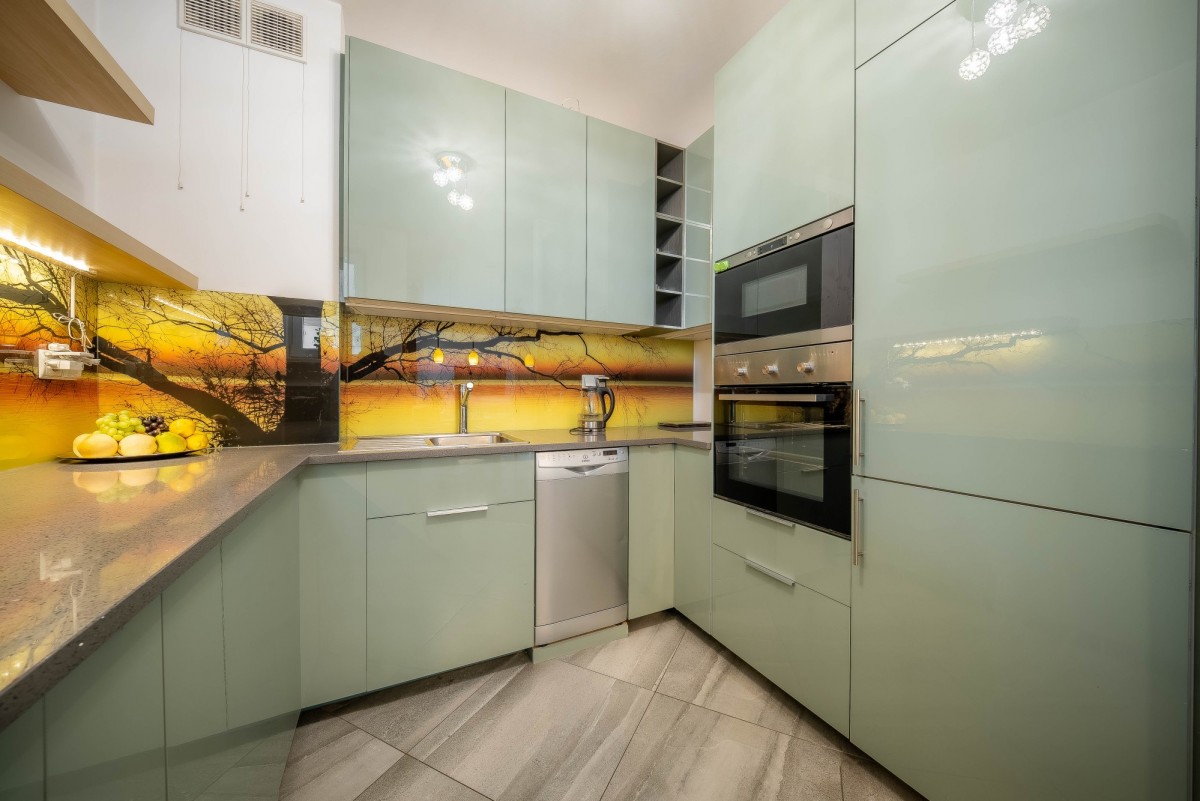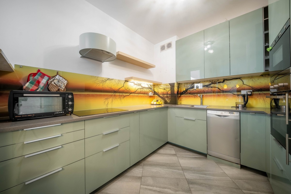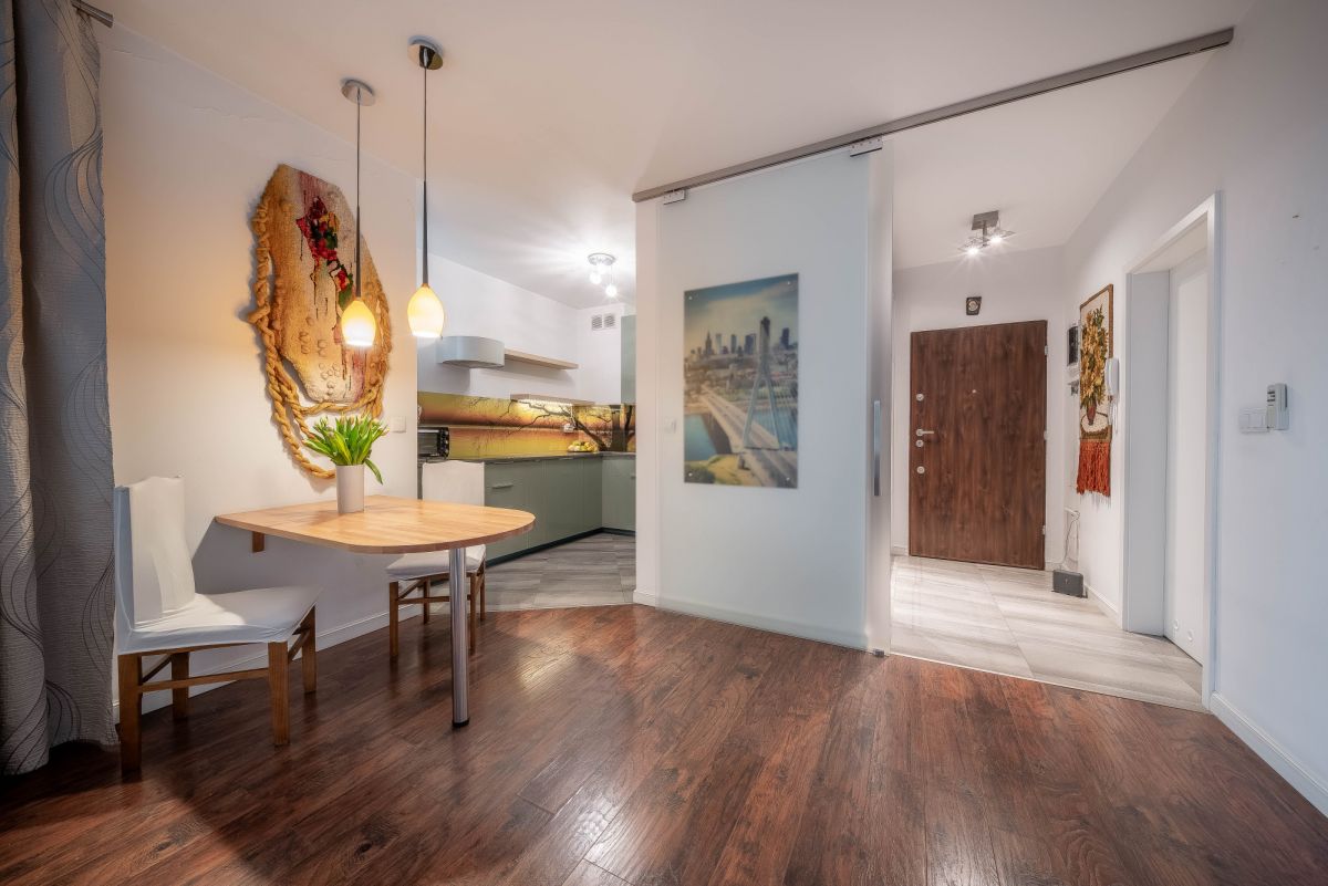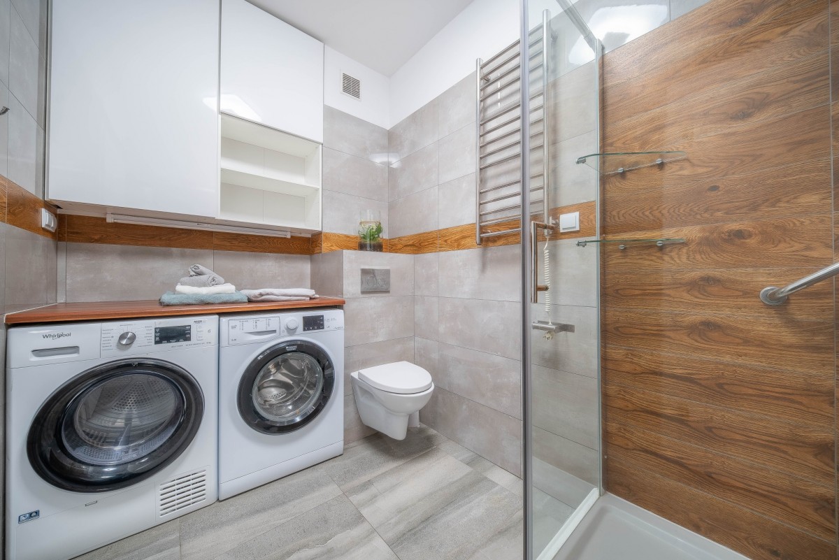 W cenie pozostają wszystkie sprzęty AGD: zmywarka, lodówka, piekarnik, mikrofalówka, płyta indukcyjna, pralka, suszarka oraz telewizor. Możesz wprowadzić się od razu. W szafach wnękowych zmieścisz bez problemu swoje rzeczy.