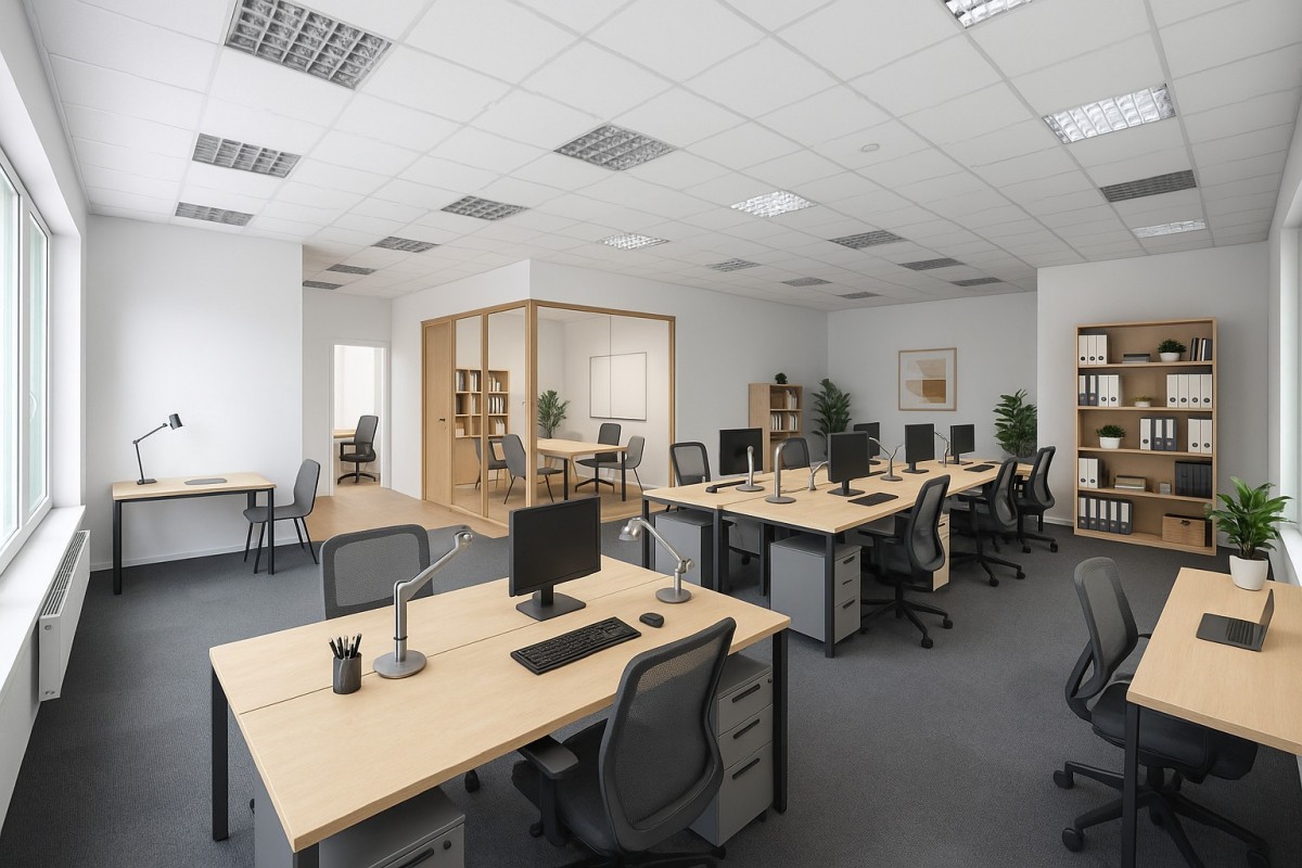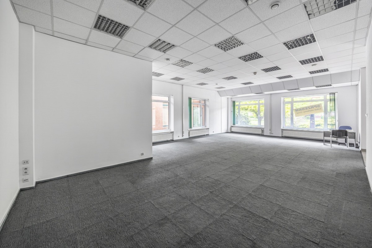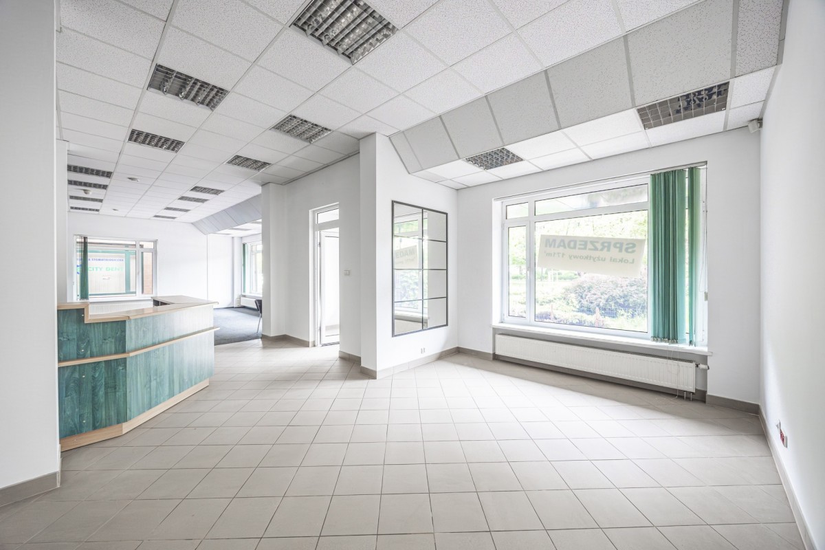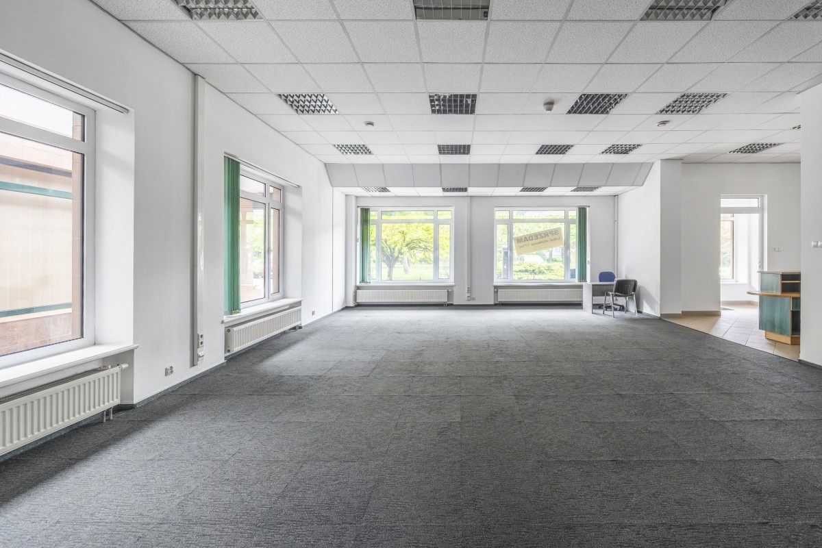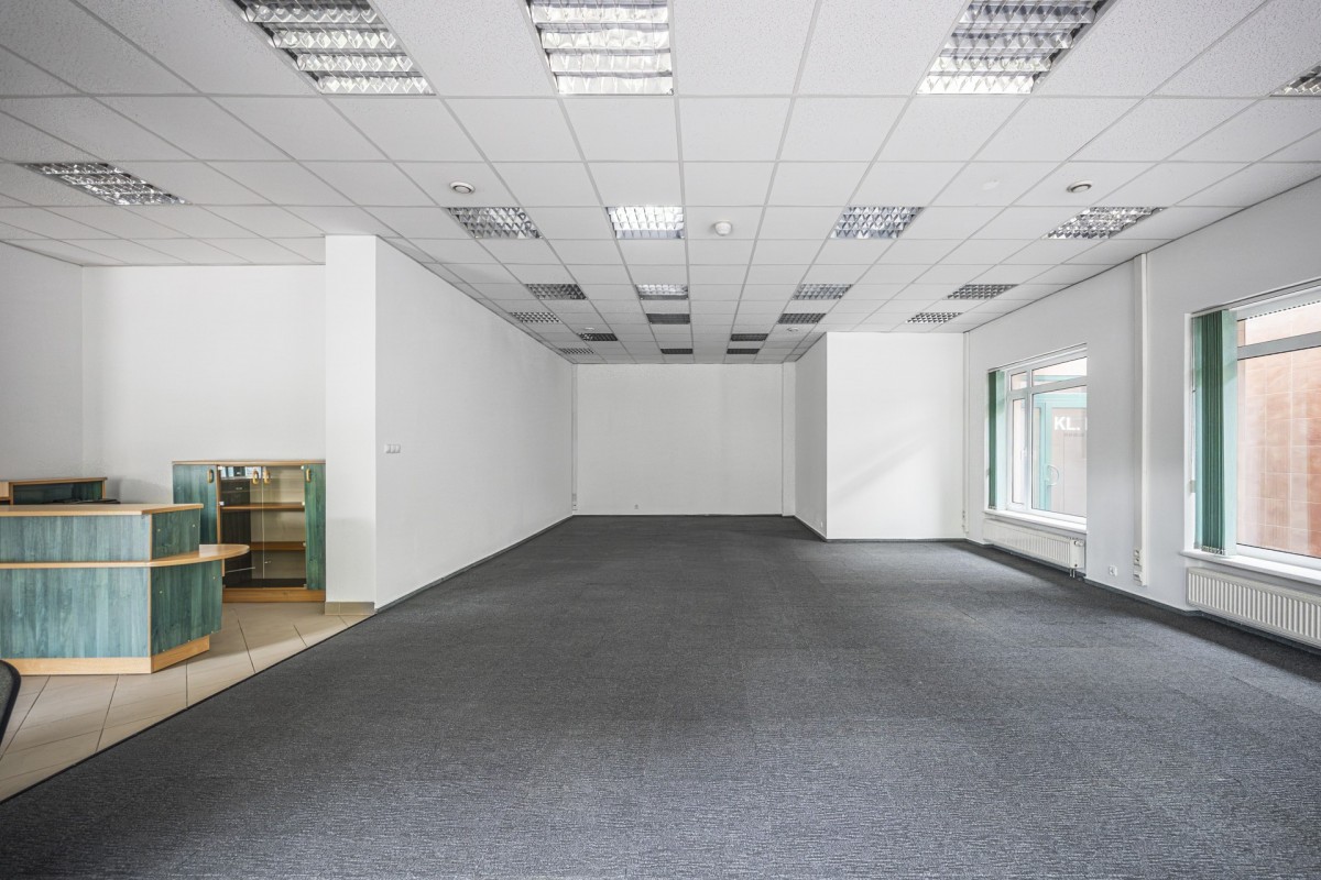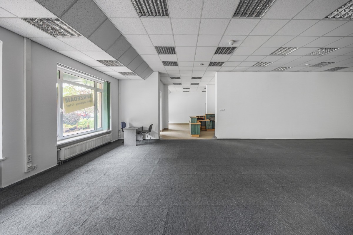 Biuro: Przestronny open space idealny na siedzibę firmy, z możliwością wydzielenia dodatkowych pomieszczeń biurowych.