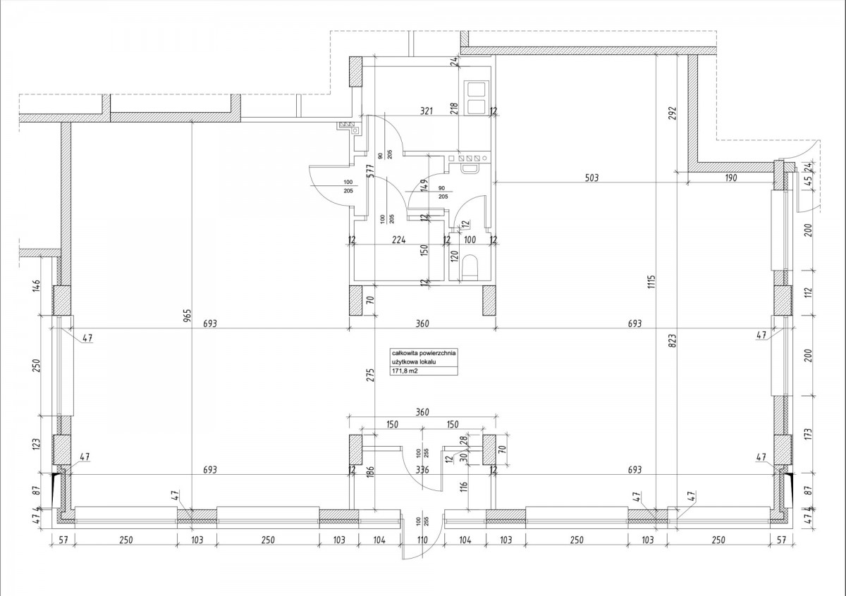 Lokal o powierzchni 171 m2, aktualnie podzielony na: