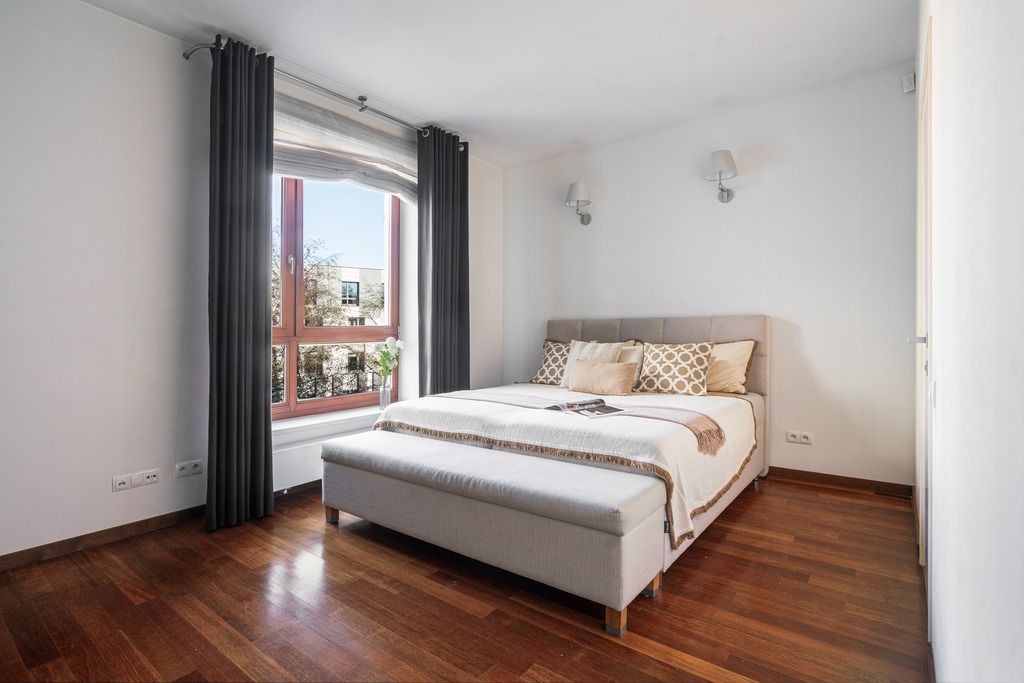 The apartment is located on Franciszka Klimczaka Street, in Miasteczko Wilanów, one of the most desirable districts of Warsaw. Nearby are numerous shops, restaurants, cafes, renowned schools, preschools, as well as numerous green spaces and the Jan III Sobieski Palace.