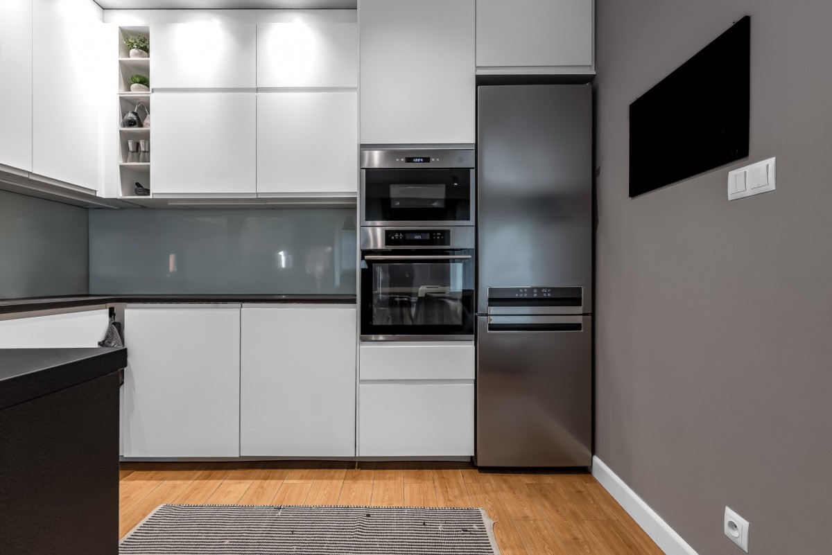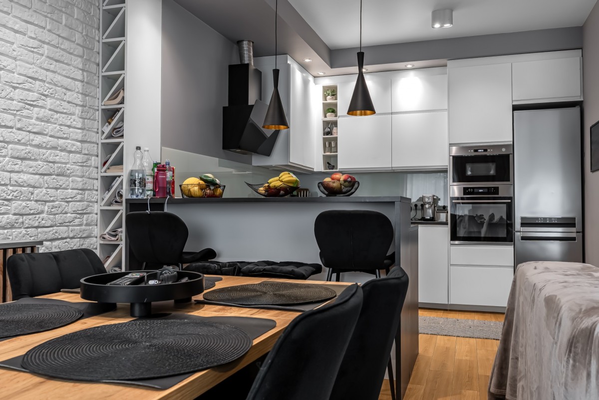 – salon z kominkiem i wyjściem do prywatnego ogródka – idealne miejsce na kawę czy spotkania z bliskimi