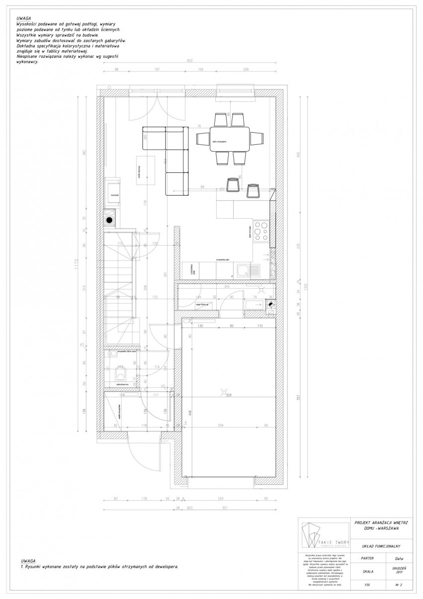 Parter: przestronny salon z kominkiem, jadalnia z otwartą kuchnią w zabudowie, spiżarnia, toaleta, wiatrołap z szafą; wyjście na ogród (50 m²)