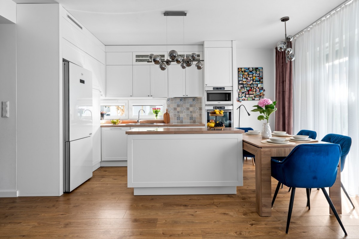zabudowy stałe (szafy wnękowe), sprzęt AGD (lodówka, piekarnik, zmywarka).