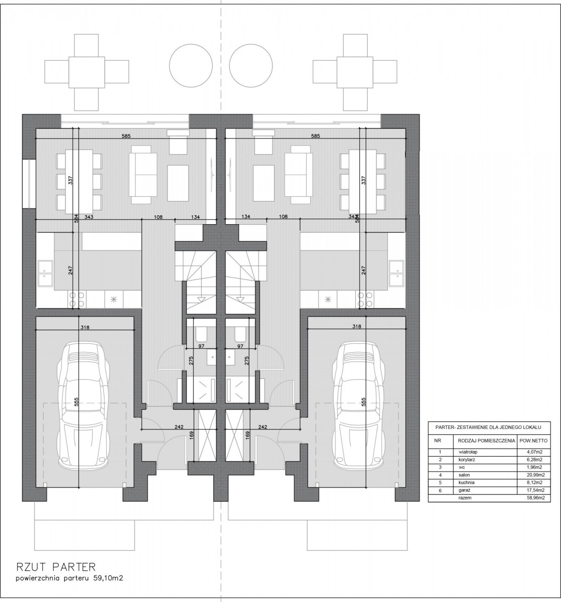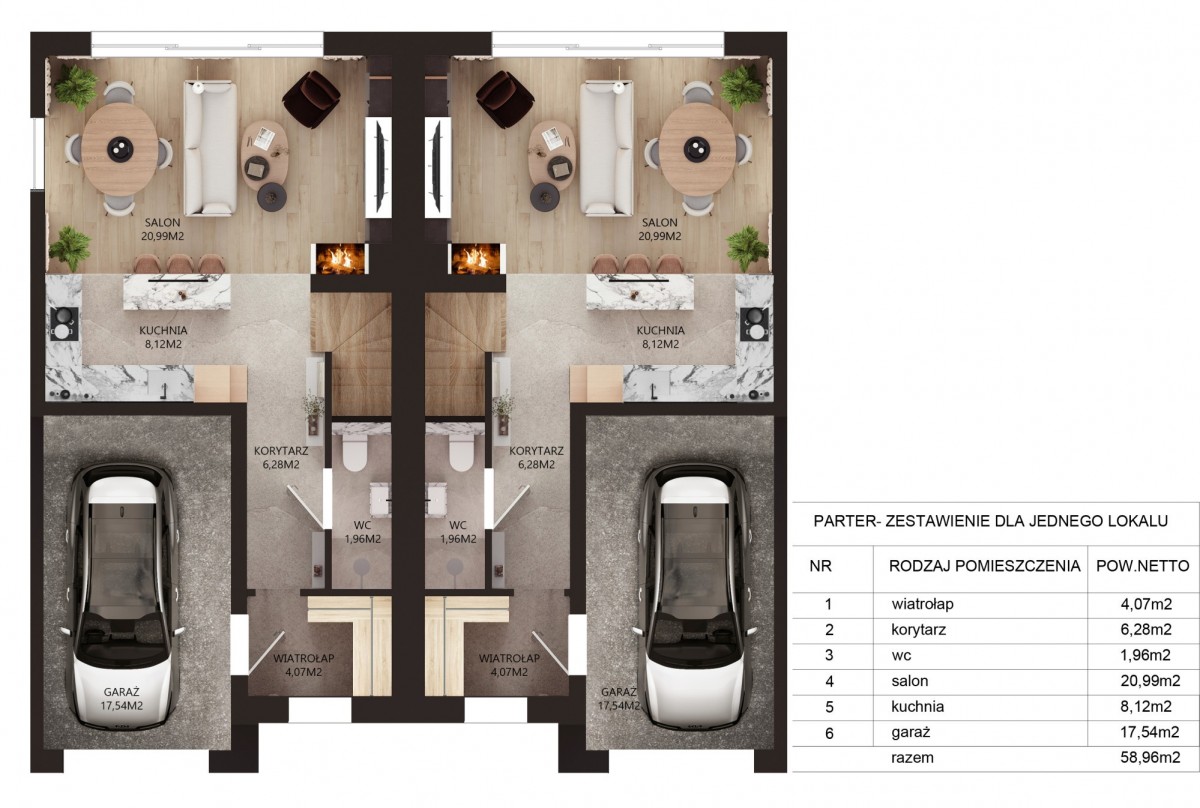 - Dwa miejsca postojowe, w tym jedno w garażu