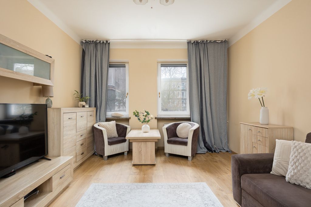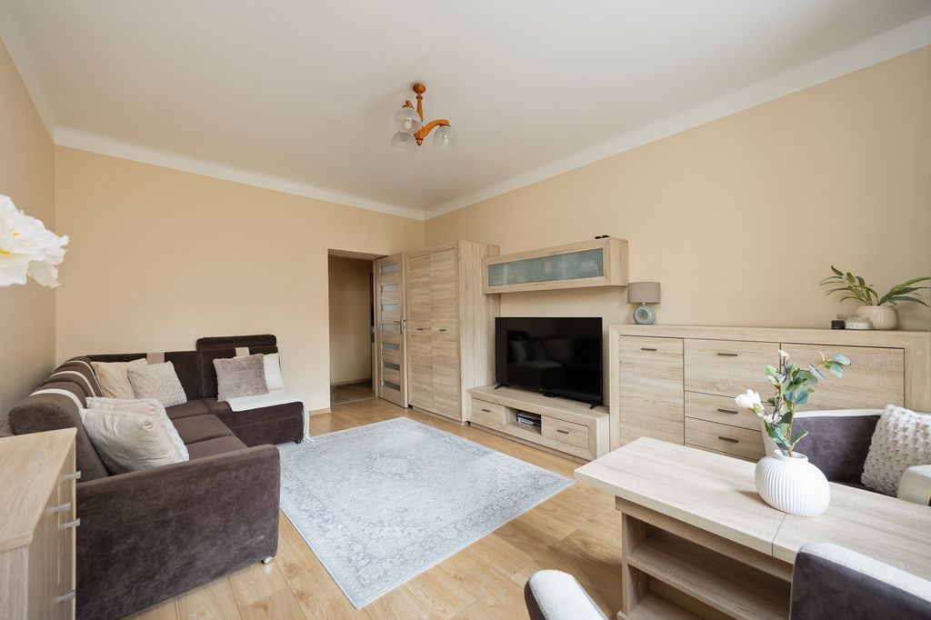 Okna wymienione na PCV marki Oknoplast. Drzwi wewnętrzne wymienione 10 lat temu. W pokoju dziennym wymieniono elektrykę oraz położono gładzie. Do mieszkania przynależy duża piwnica o powierzchni ok. 7 m2. W budynku znajdują się jedynie trzy mieszkania na piętrze.