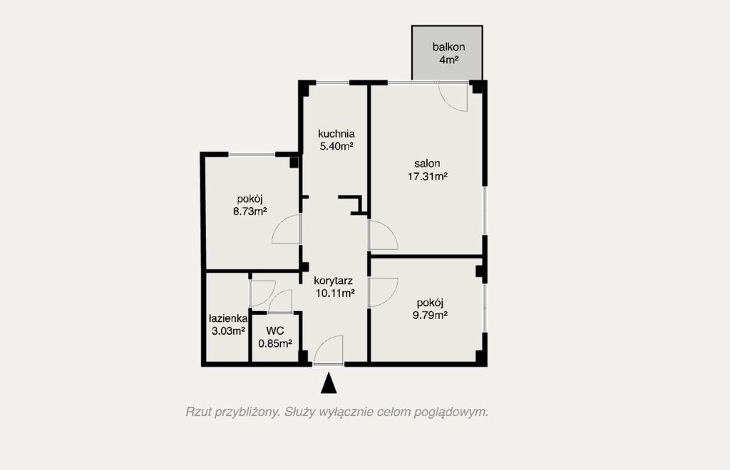 Nieruchomość o powierzchni 59,40 m² składa się z następujących pomieszczeń: