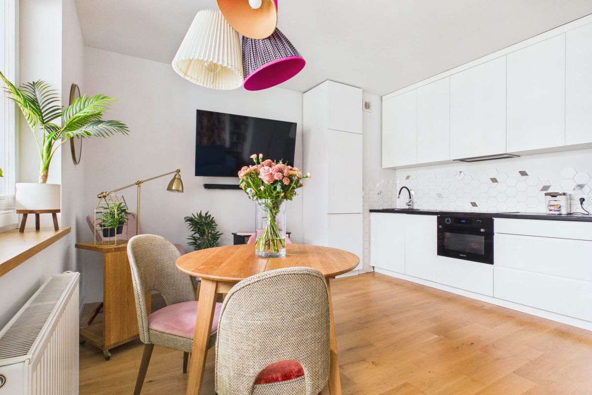 Lokal składa się z jasnego pokoju dziennego połączonego z aneksem kuchennym, łazienki oraz funkcjonalnego przedpokoju. Duży balkon dodatkowo powiększa przestrzeń mieszkania i stanowi idealne miejsce na relaks po pracy.