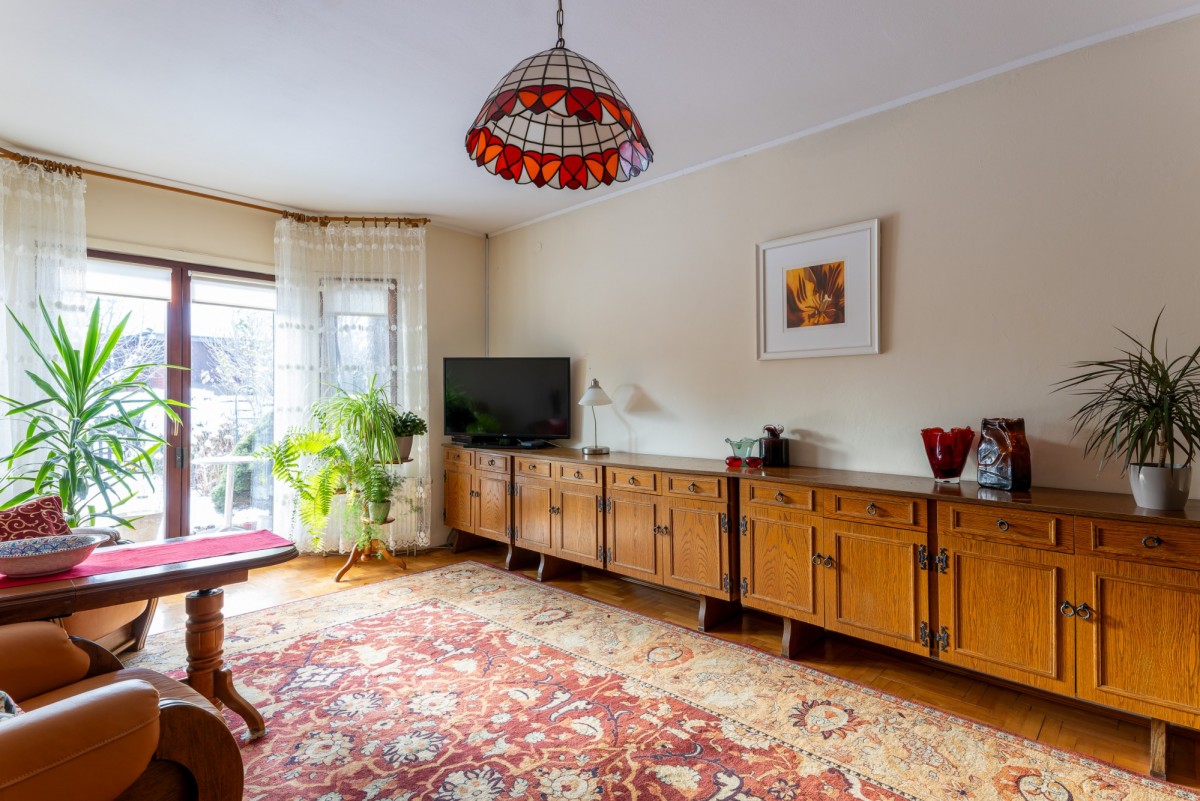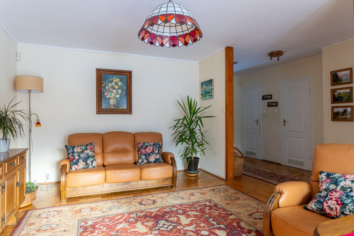 Parterowy dom w zabudowie szeregowej na zamkniętym, bezpiecznym osiedlu domów jednorodzinnych i szeregowych Viking 1 na Białołęce. Otoczony zielenią, z zadbanym ogrodem i spokojnym sąsiedztwem. Powierzchnia 74 m.kw to przestronny i jasny pokój dzienny z bezpośrednim wyjściem do ogrodu, 2 sypialnie, oddzielna kuchnia, łazienka i oddzielne wc. Mieszkanie jest w pełni umeblowane, kuchnia wyposażona w sprzęt AGD, w sypialniach wygodne łózka i przestronne szafy, dodatkowe miejsca do przechowywania w komodach w pokoju dziennym. Przed domem, na osiedlowej ulicy, miejsca do parkowania. Na tym kameralnym osiedlu panuje miła, rodzinna atmosfera, bardzo dobre sąsiedzkie relacje, poczucie przynależności i bezpieczeństwa.