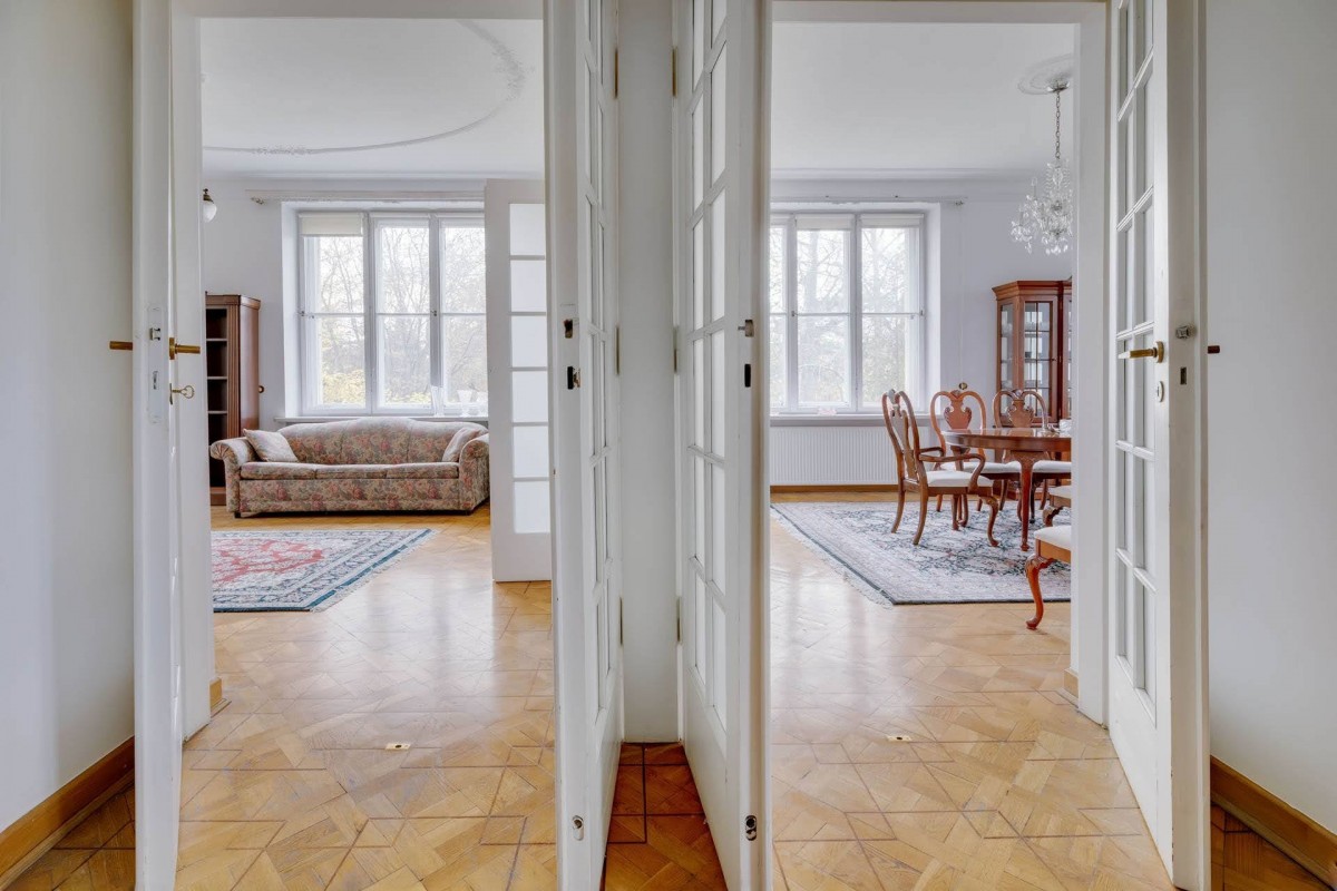 This apartment stands out due to its size, unique layout, and historical significance. The combination of a fireplace in the living room and a balcony overlooking a quiet garden enhances everyday living. It is an excellent choice for those seeking spaciousness and comfort, as well as for businesses needing a prestigious location.