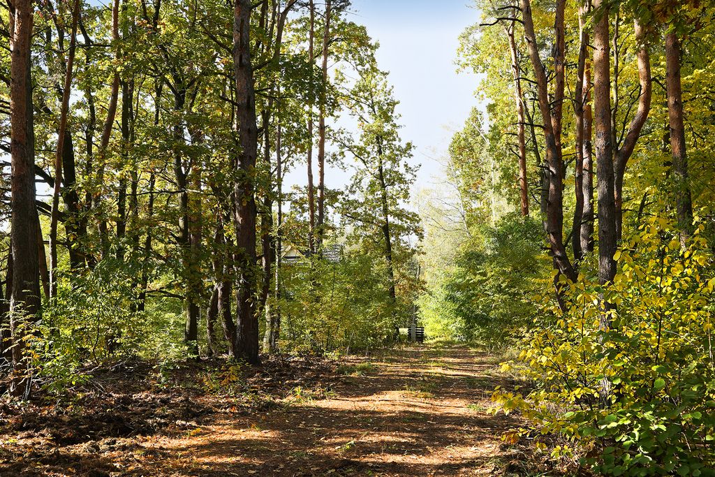 Dom usytuowany na pięknej, zadrzewionej działce z przewagą rodzimych sosen, w spokojnej i kameralnej okolicy. To idealne miejsce dla osób, które cenią przestrzeń i kontakt z naturą, nie rezygnując z wygody życia blisko miasta.