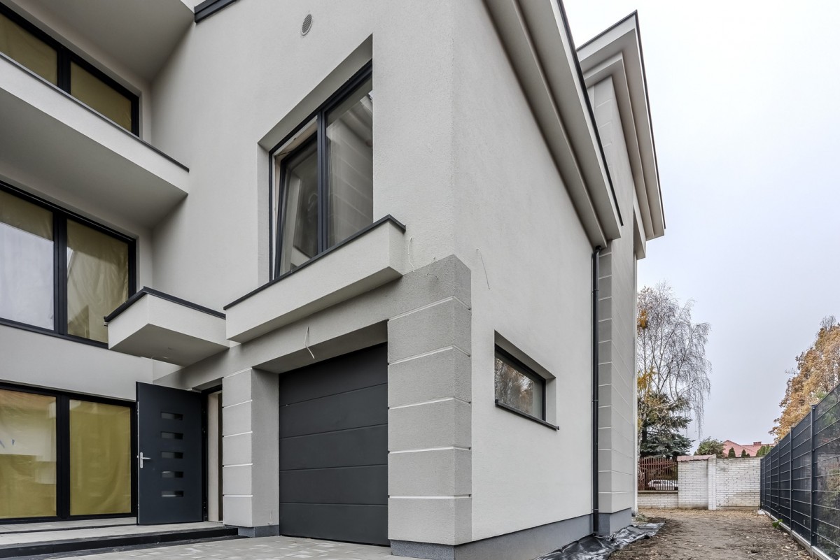 Bezpieczeństwo i wygoda: Drzwi premium marki Drutex, system alarmowy, centralny odkurzacz (Retraflex) oraz automatyczna brama składana.