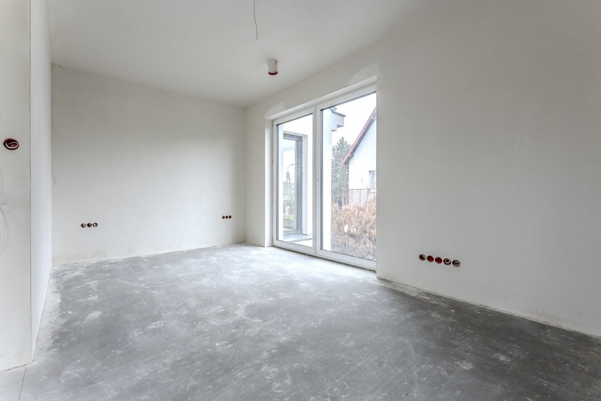 Komfort termiczny i akustyczny: Zastosowano ogrzewanie podłogowe w całym budynku, rekuperację oraz wysokiej klasy okna PVC (U~0,80). Ściana między segmentami wykonana z pustaka akustycznego gwarantuje pełną prywatność.