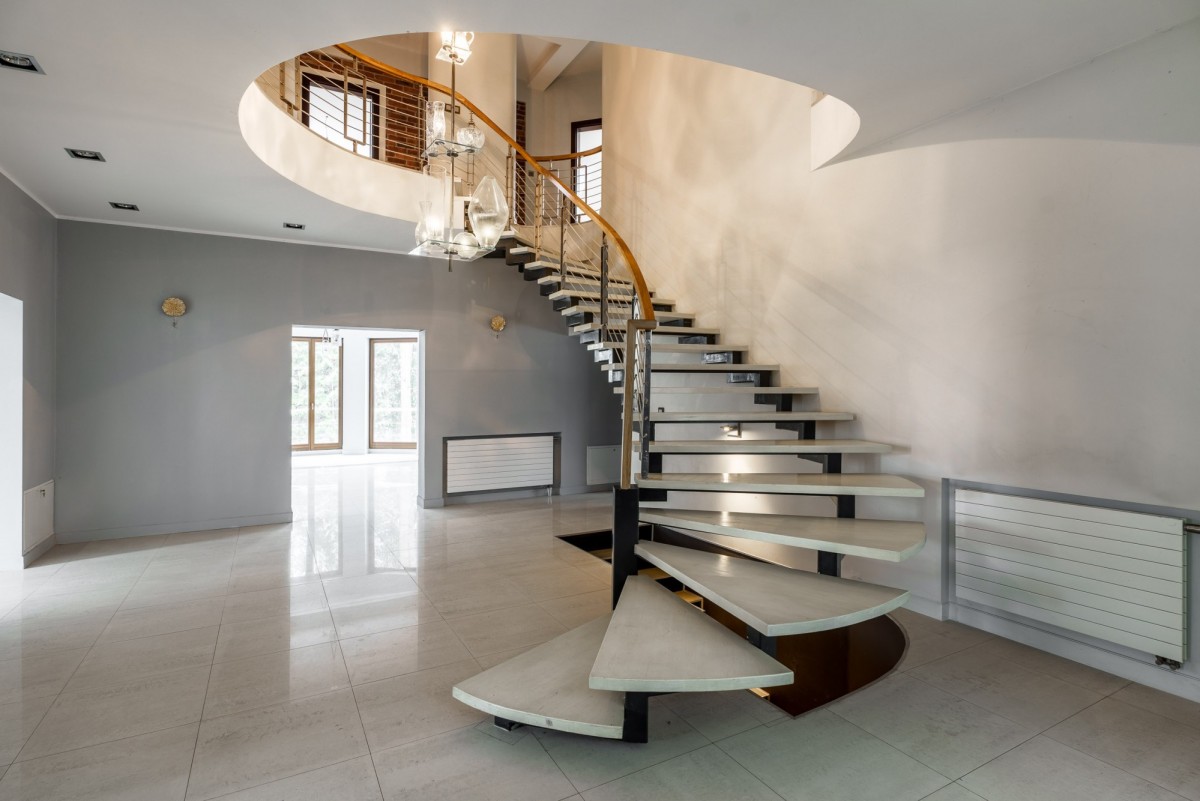 Dom o imponującej powierzchni 566 m² oferuje przemyślany układ, elegancki salon z kominkiem, kilka niezależnych sypialni z łazienkami i garderobami, dużą otwartą kuchnię oraz niezależne mieszkanie w części piwnicznej. Całość została wykończona materiałami najwyższej klasy – marmur, drewno, naturalny kamień – tworząc ponadczasowe, luksusowe wnętrza.