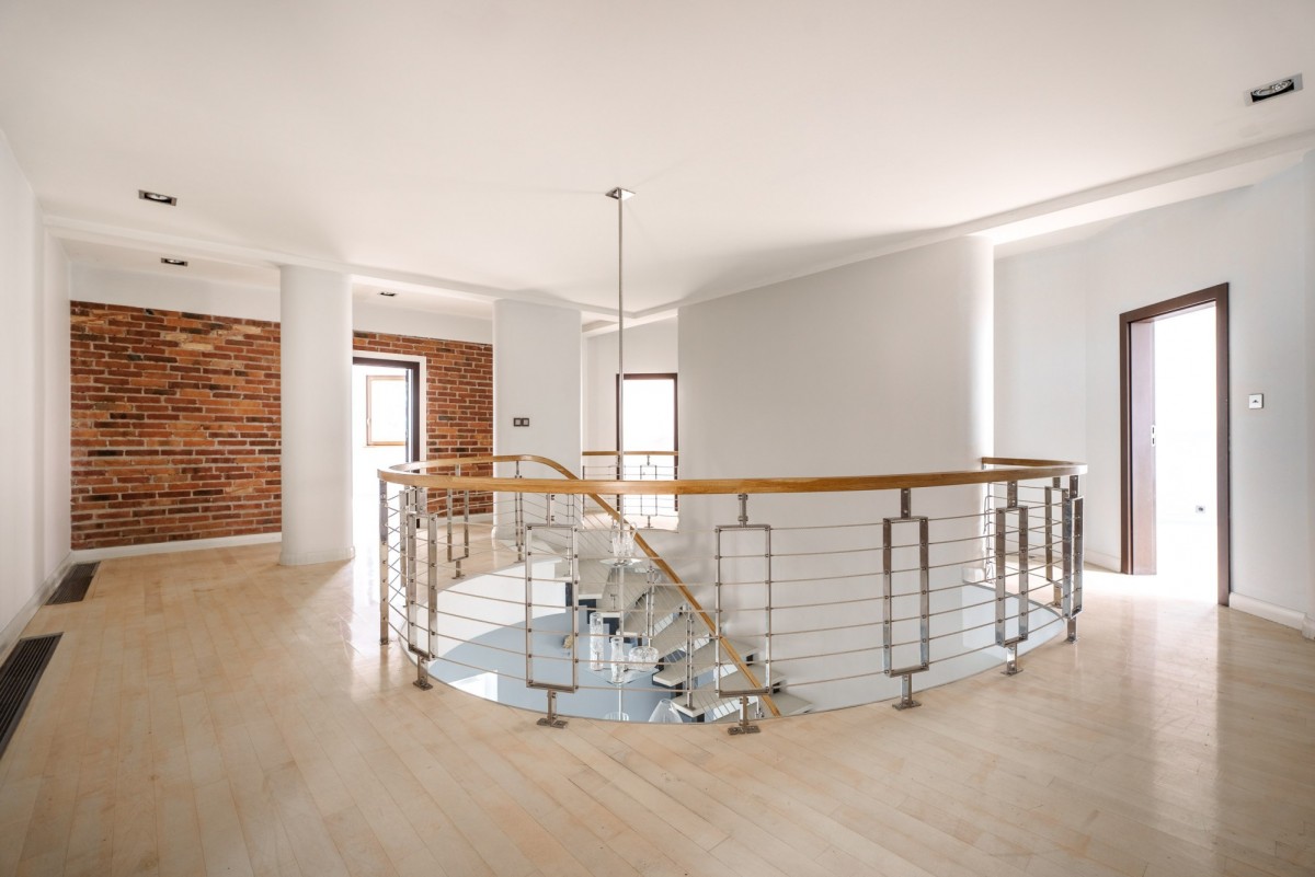 Ten przestronny dom na działce 2750 m² to idealne miejsce do życia i pracy. Ma 7 pokoi, studio oraz przestronną piwnicę z potencjałem na mieszkanie lub biuro. Wykończony z najwyższej jakości materiałów – drewna, marmuru i stylowych płytek – łączy luksus z funkcjonalnością. Wysokie wnętrza, kominek i przemyślany układ zapewniają komfort oraz prestiż.