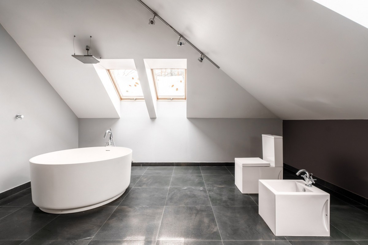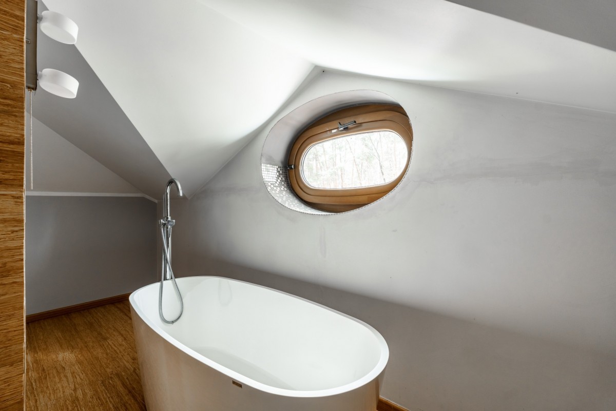 * prywatnej strefy nocnej na piętrze z apartamentem master i sypialniami z garderobami i łazienkami,