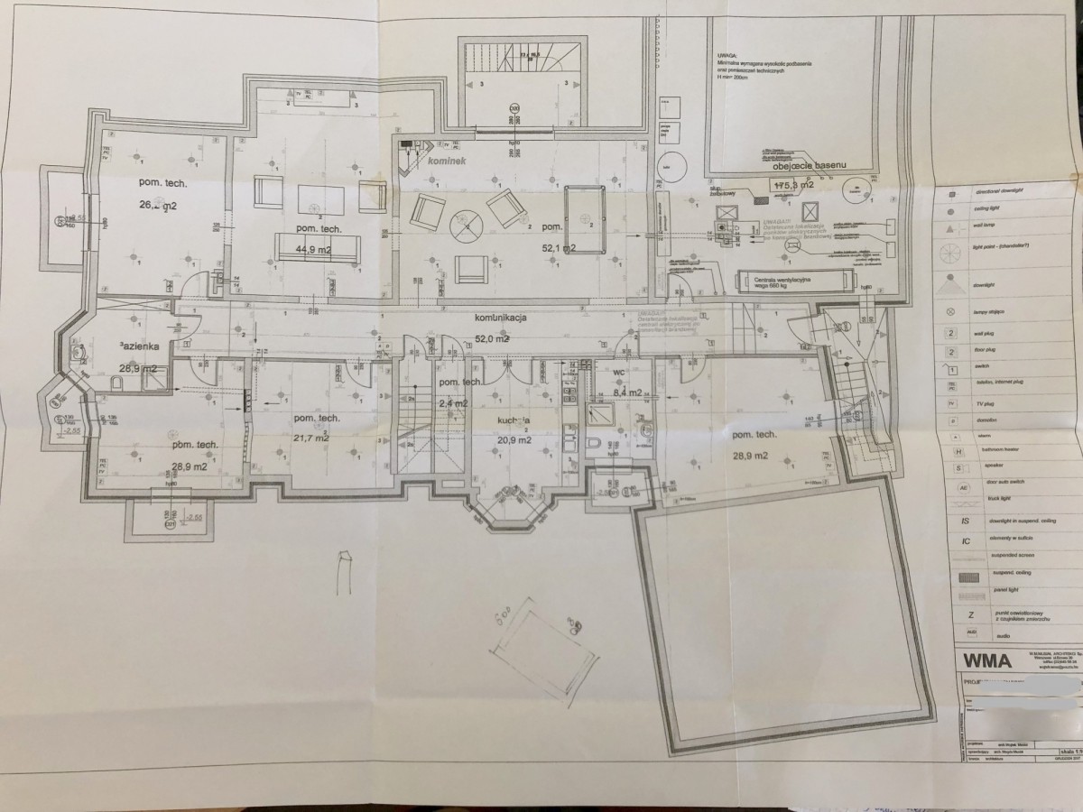 Dom składa się z trzech kondygnacji oraz dodatkowej przestrzeni nad garażem. Został zaprojektowany z myślą o funkcjonalności i przestrzeni dla całej rodziny – z licznymi pokojami, prywatnymi łazienkami oraz strefą rekreacyjną, której centralnym punktem jest basen z jacuzzi zajmujący ponad 140 m².