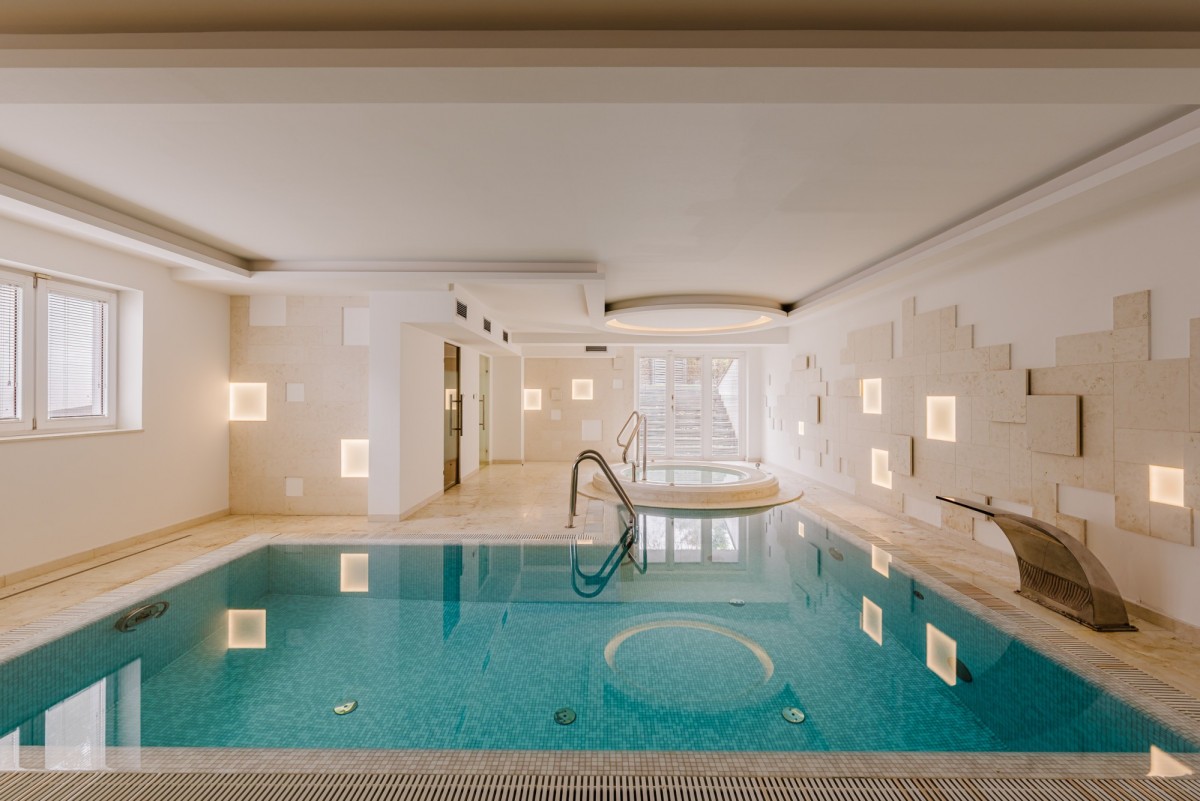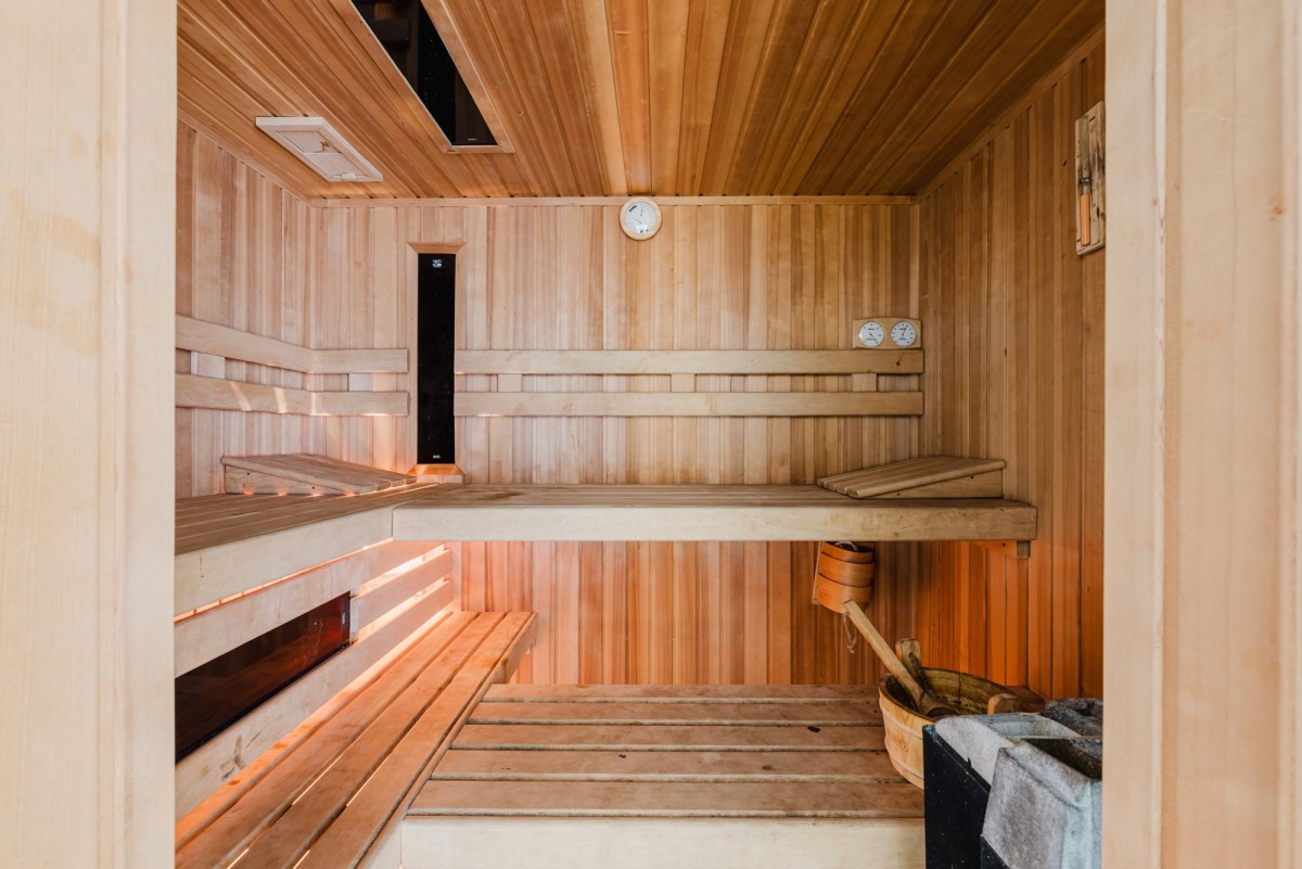 Top of the top to pełnowymiarowa strefa SPA – basen z przeciwprądem, jacuzzi, sauna oraz łazienka – z bezpośrednim wyjściem do ogrodu.