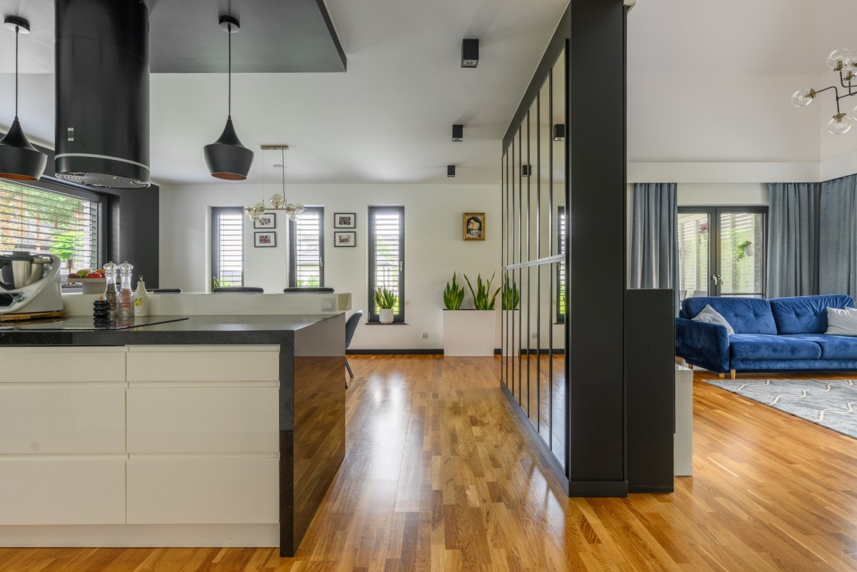 - Otwarta kuchnia połączona z jadalnią