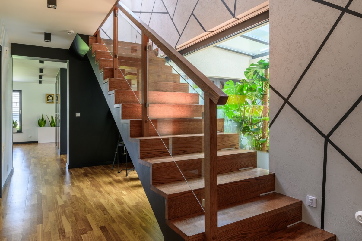 - Główna sypialnia z garderobą i przeszkloną antresolą