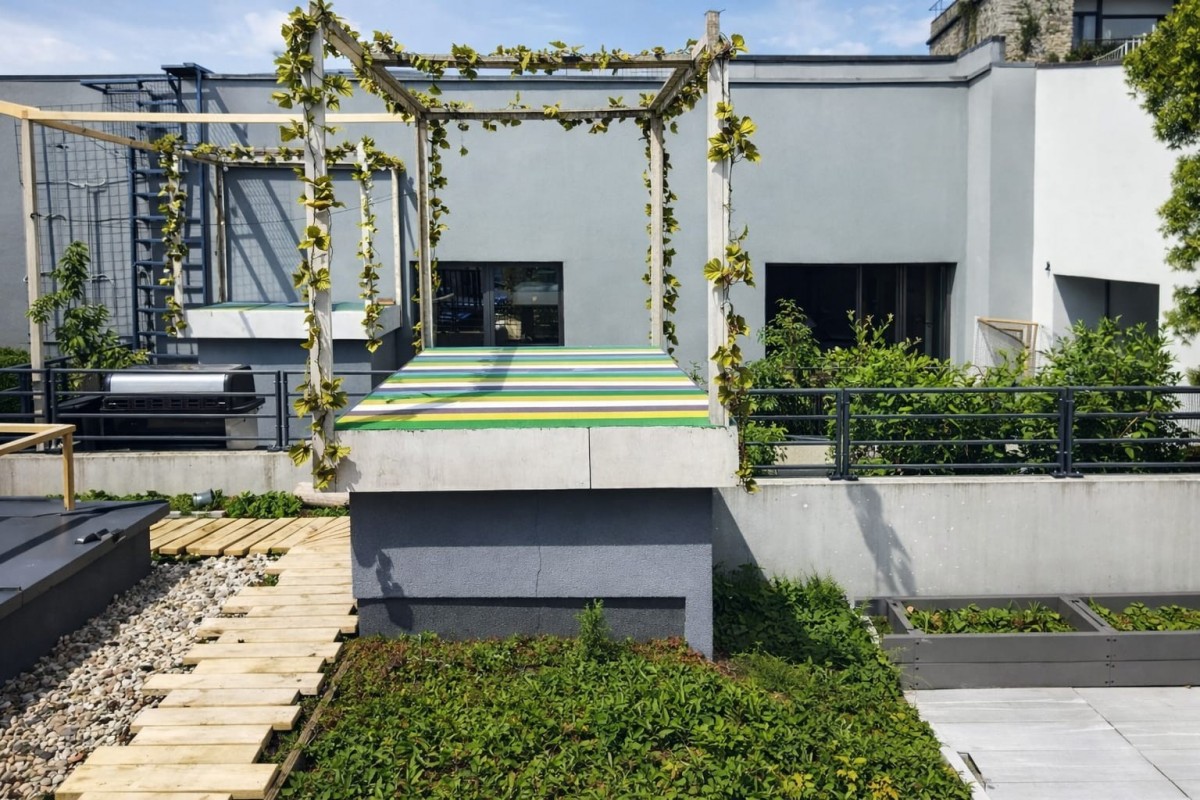 Naturalnym przedłużeniem salonu jest przestronny taras / ogród o powierzchni aż 35 m², który pełni funkcję prywatnej strefy relaksu nad miastem – idealnej na poranną kawę, kolacje przy zachodzie słońca czy odpoczynek po pracy, z widokiem, który zmienia się wraz z porą dnia.