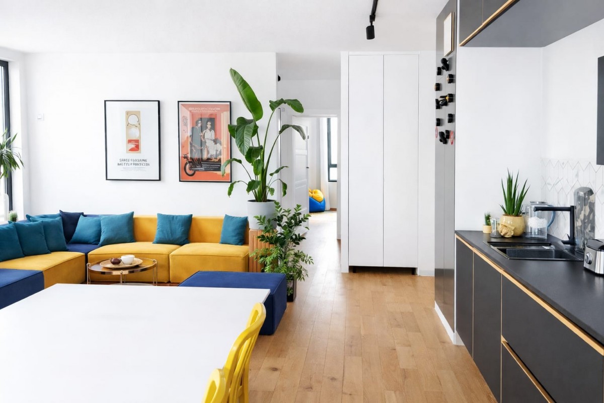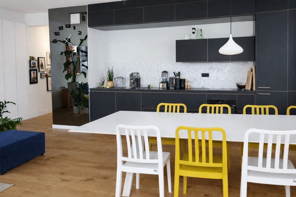 Już od wejścia uwagę przyciąga imponujący pokój dzienny z aneksem kuchennym o powierzchni ok. 41 m² – przestrzeń, która realnie robi wrażenie i stanowi rzadkość w nowym budownictwie w tej lokalizacji, szczególnie w mieszkaniach wielopokojowych. Strefa dzienna została zaprojektowana bez kompromisów – z myślą o komforcie codziennego życia, spotkaniach towarzyskich i rodzinnych chwilach. Duże przeszklenia zapewniają doskonałe doświetlenie i potęgują poczucie przestrzeni.
