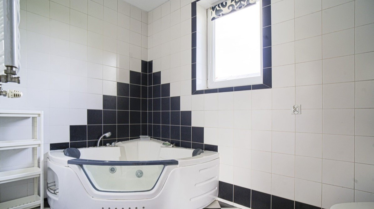 Na piętrze są 3 duże sypialnie i łazienka z wanną.