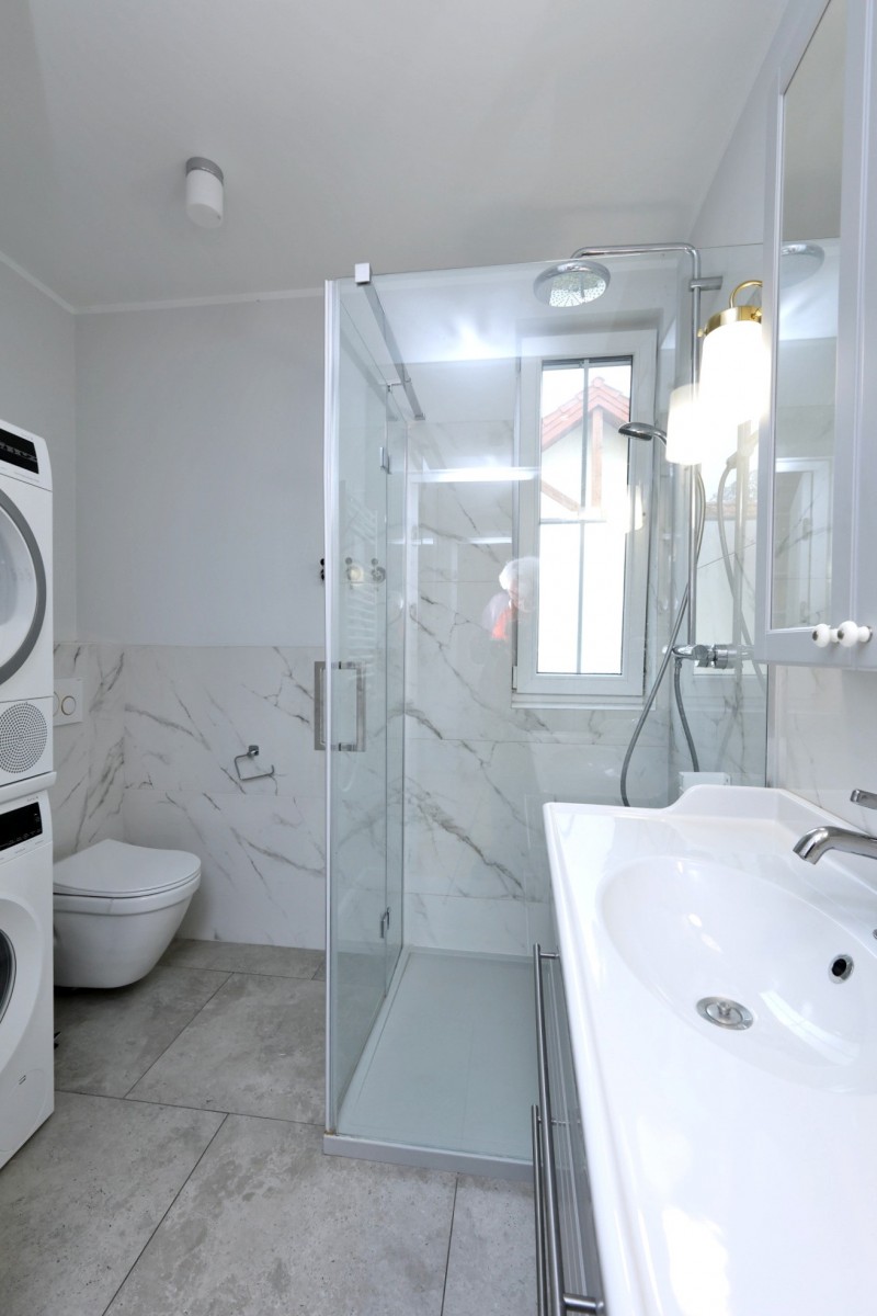Na tej kondygnacji mieści się również wiatrołap, przedsionek, łazienka z oknem (3,66 m²) oraz garaż (17,78 m²).