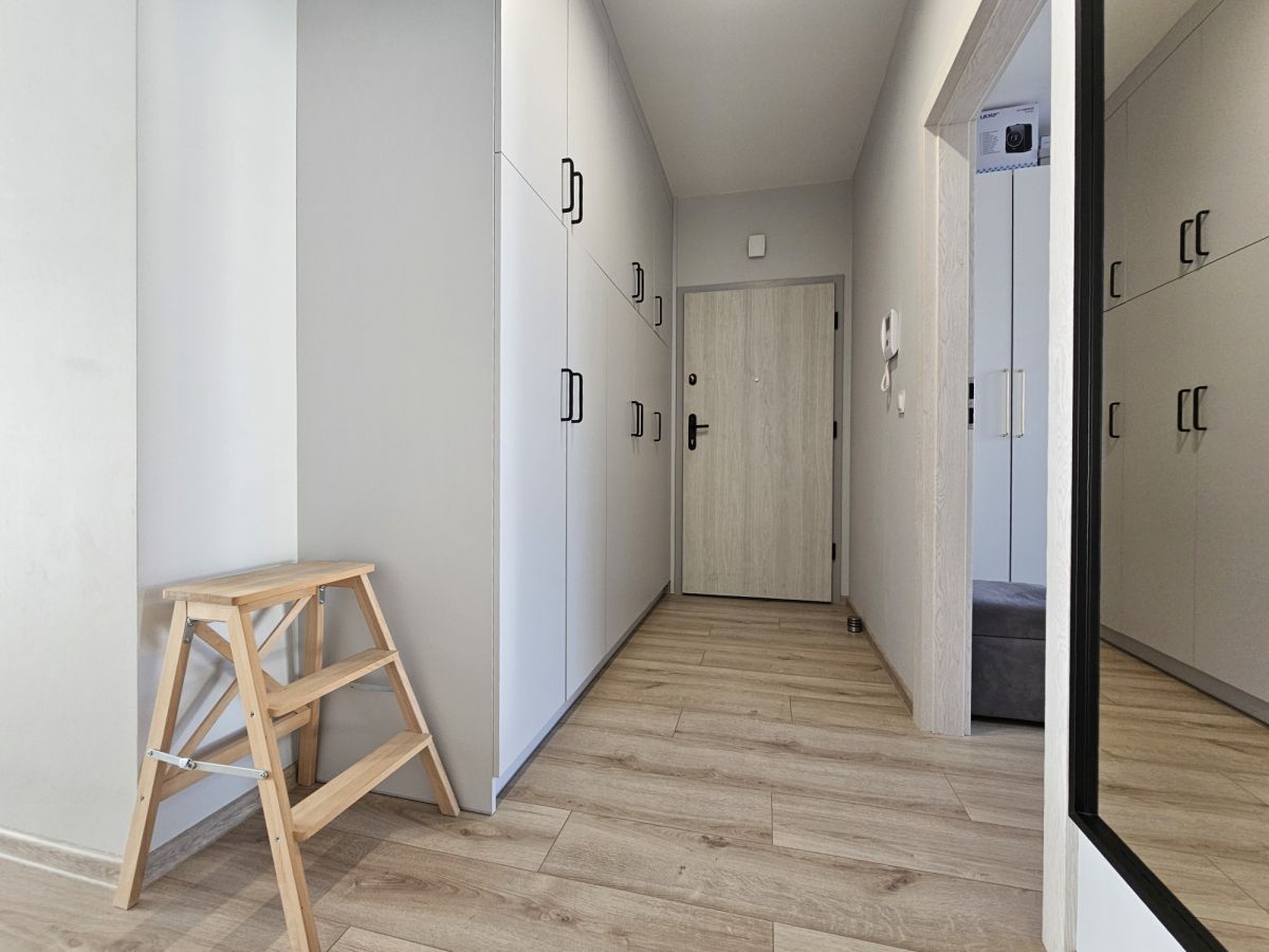 Bardzo ładnie urządzone w stonowanej kolorystyce, wyposażone – pełna zabudowa kuchni, duża szafa w przedpokoju, meble w łazience.