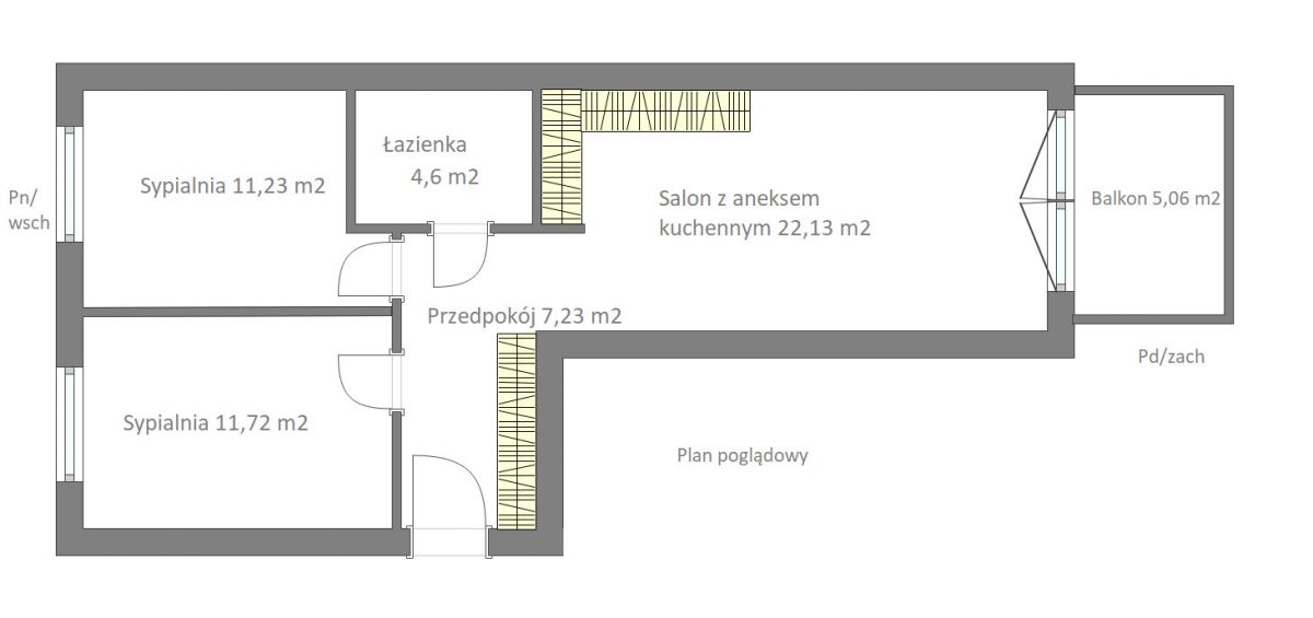 – sypialnie- 11,23 m2 i 11,72 m2,