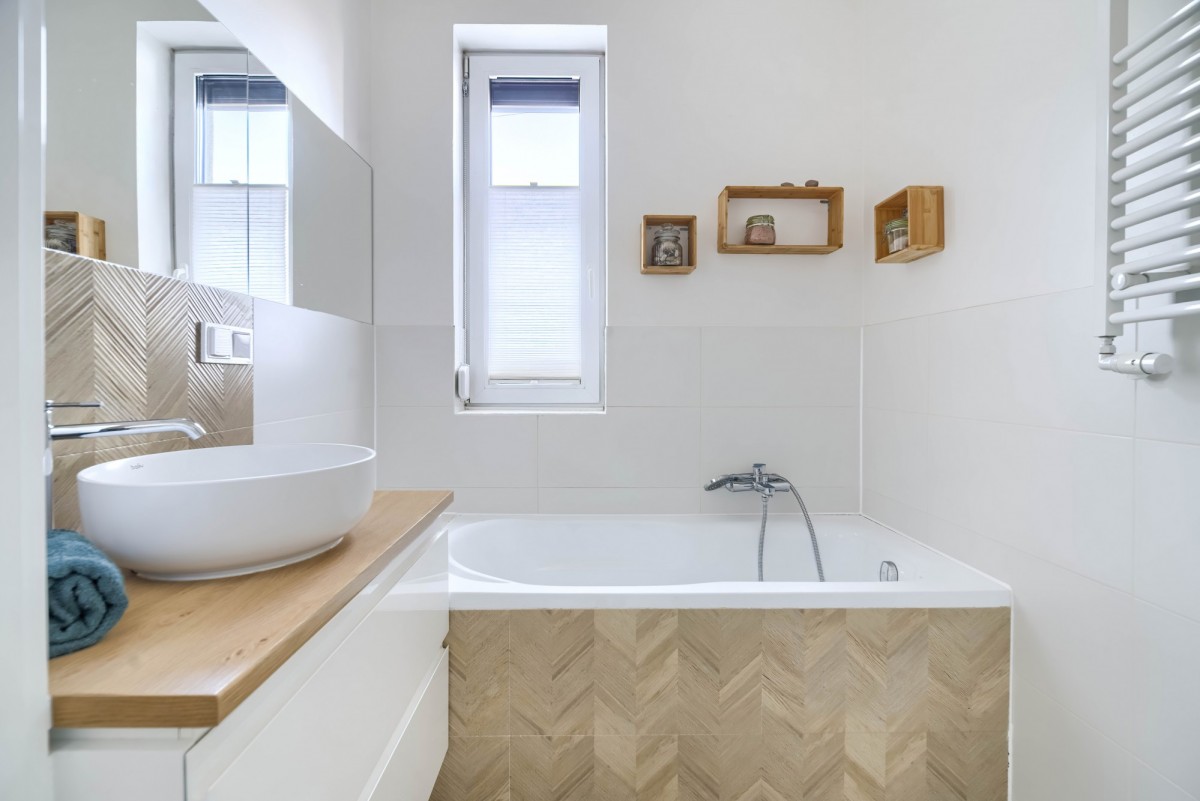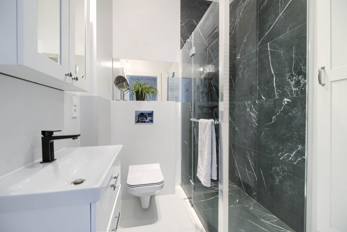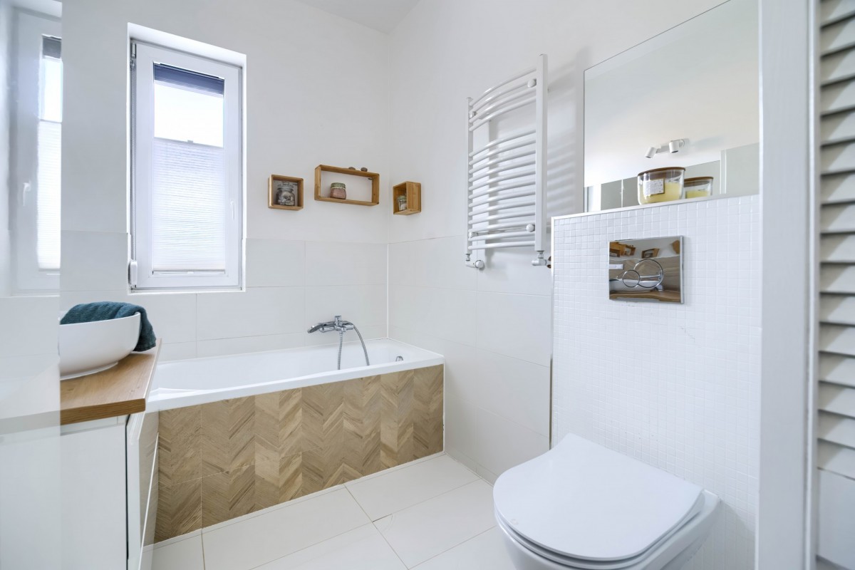 W łazience i wiatrołapie zastosowano ogrzewanie podłogowe.