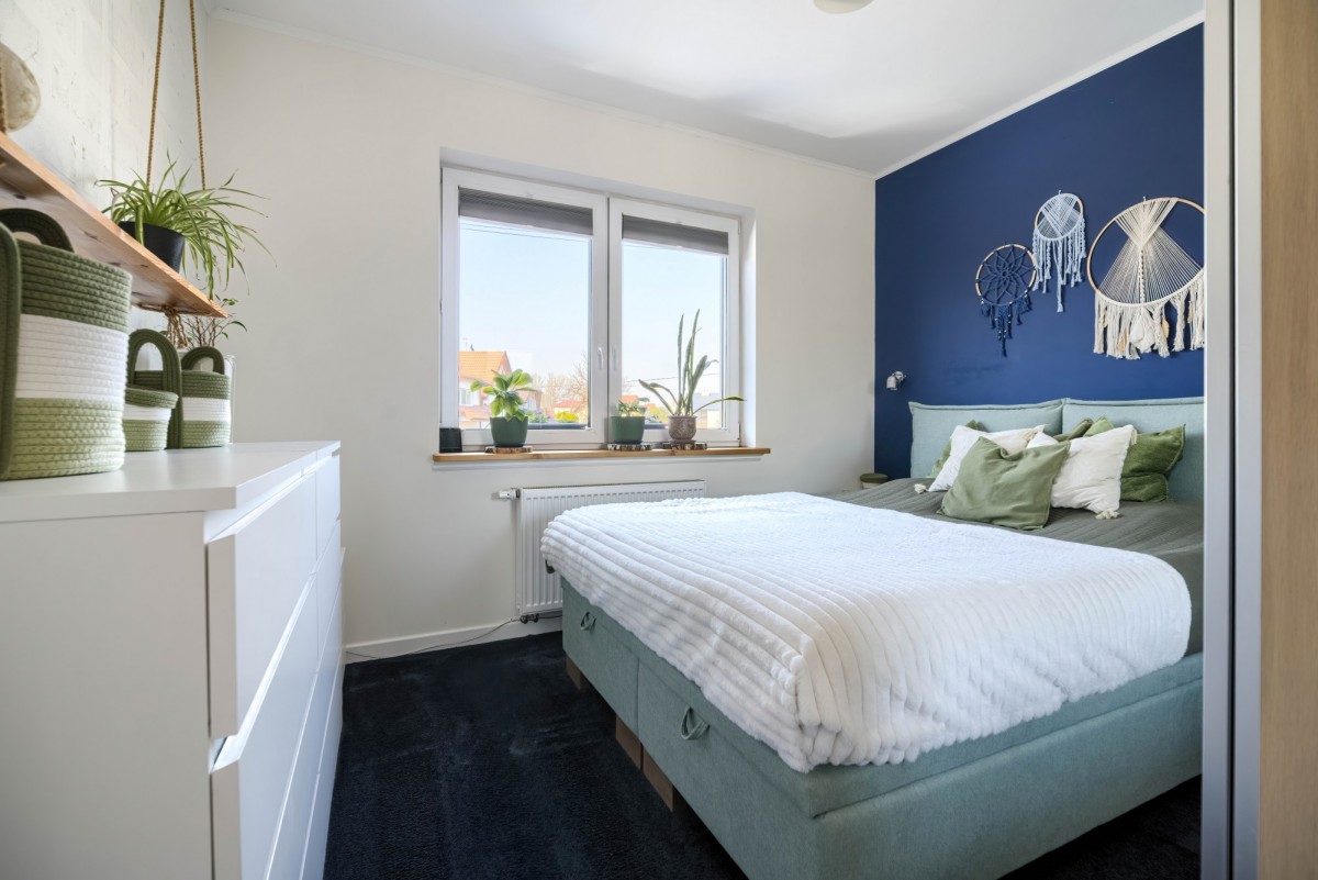 Klimatyczne poddasze z widocznymi belkami i klimatyzacją stanowi idealne miejsce na gabinet, pokój hobby, dodatkową sypialnię lub komfortową przestrzeń do pracy zdalnej. Znajdują się tu również dwie duże szafy w zabudowie.