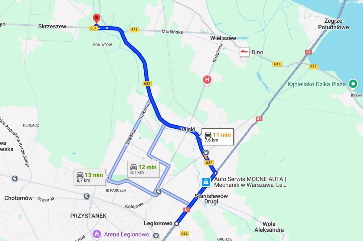Teren przylega do Drogi Wojewódzkiej 631; tylko 200 m od DW 632. Bardzo dobra widoczność oraz lokalizacja; tuż obok stacji kontroli pojazdów oraz popularnej myjni samochodowej.