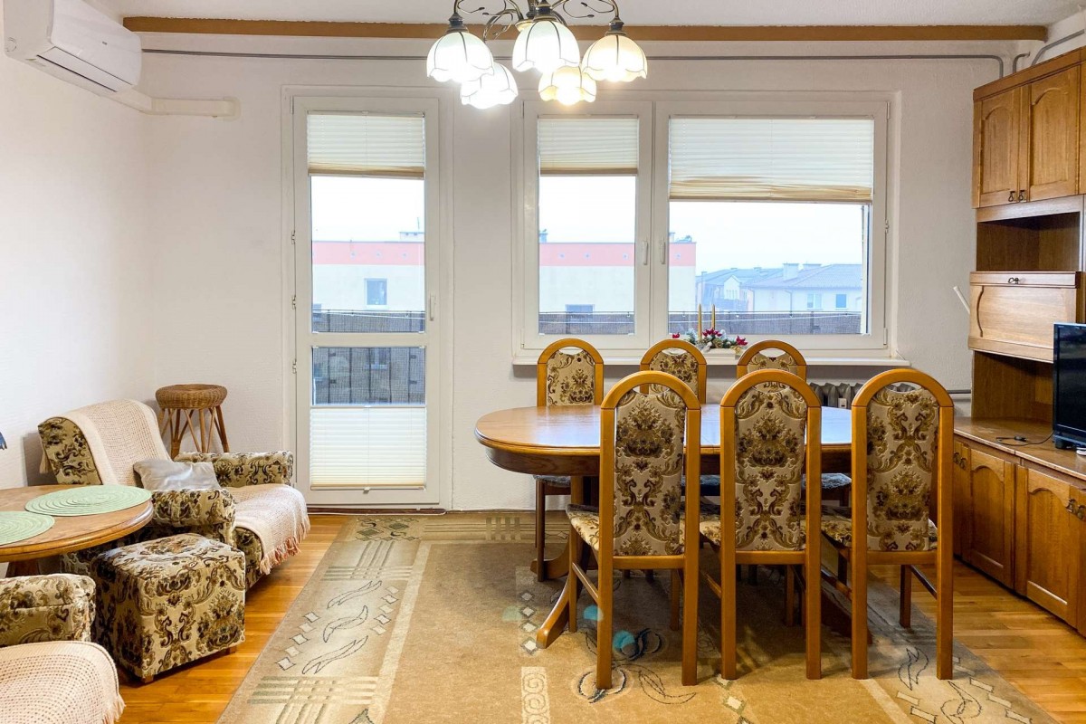 Mieszkanie składa się z przestronnego salonu z wyjściem na dużą loggię, sypialni, łazienki, oddzielnej kuchni oraz przedpokoju. Posiada ekspozycję okien na wschód i zachód. Lokal jest w pełni umeblowany i gotowy do zamieszkania.
