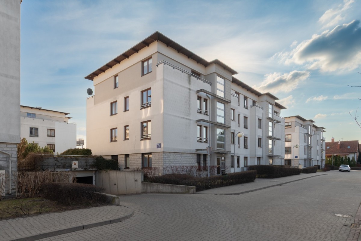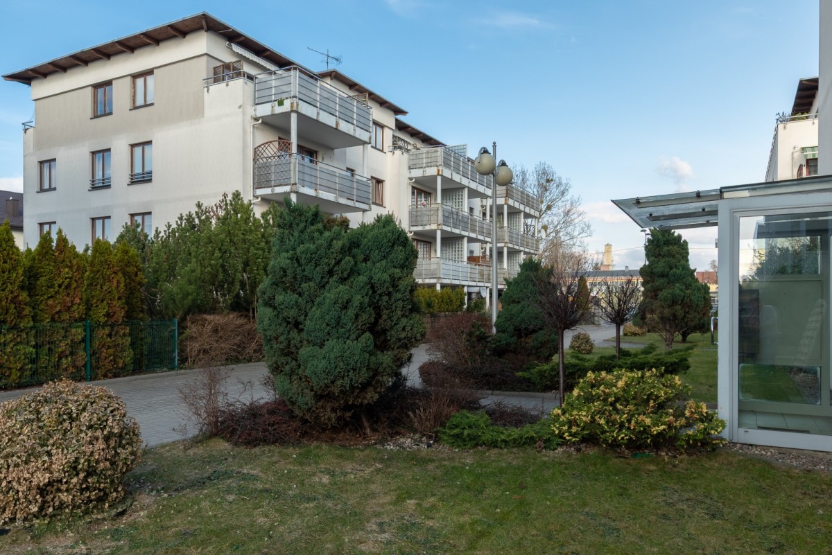 Apartament mieści się w eleganckim zespole budynków z 2003 roku. Inwestycja została zaprojektowana z myślą o komforcie mieszkańców – niską zabudowę otacza starannie wypielęgnowana zieleń.