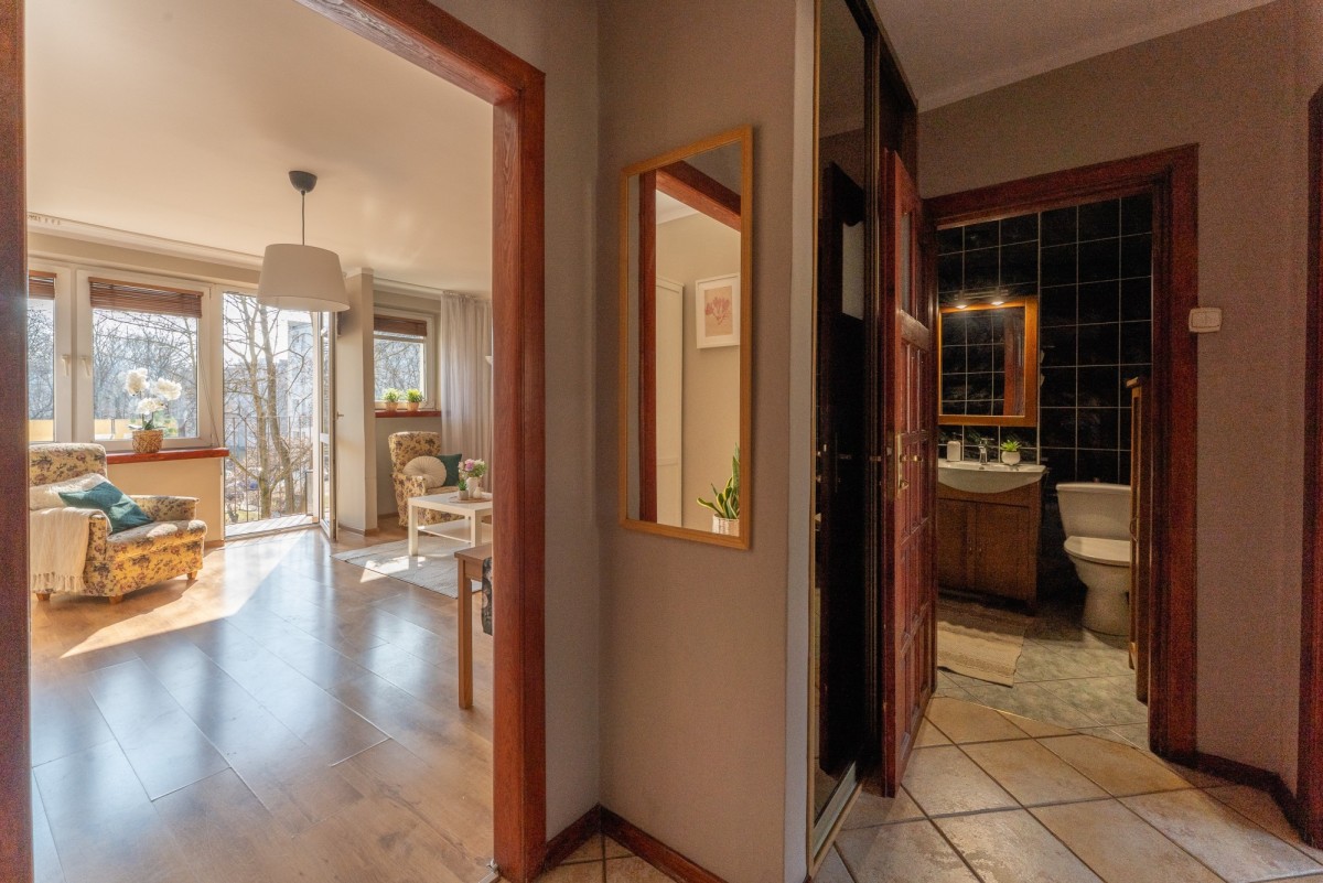 Możesz tu zamieszkać od razu – wnętrze jest zadbane, urządzone w klasycznym stylu, z przyjemną, domową atmosferą. Naturalne światło i spokojne kolory sprawiają, że przestrzeń jest ciepła i komfortowa.