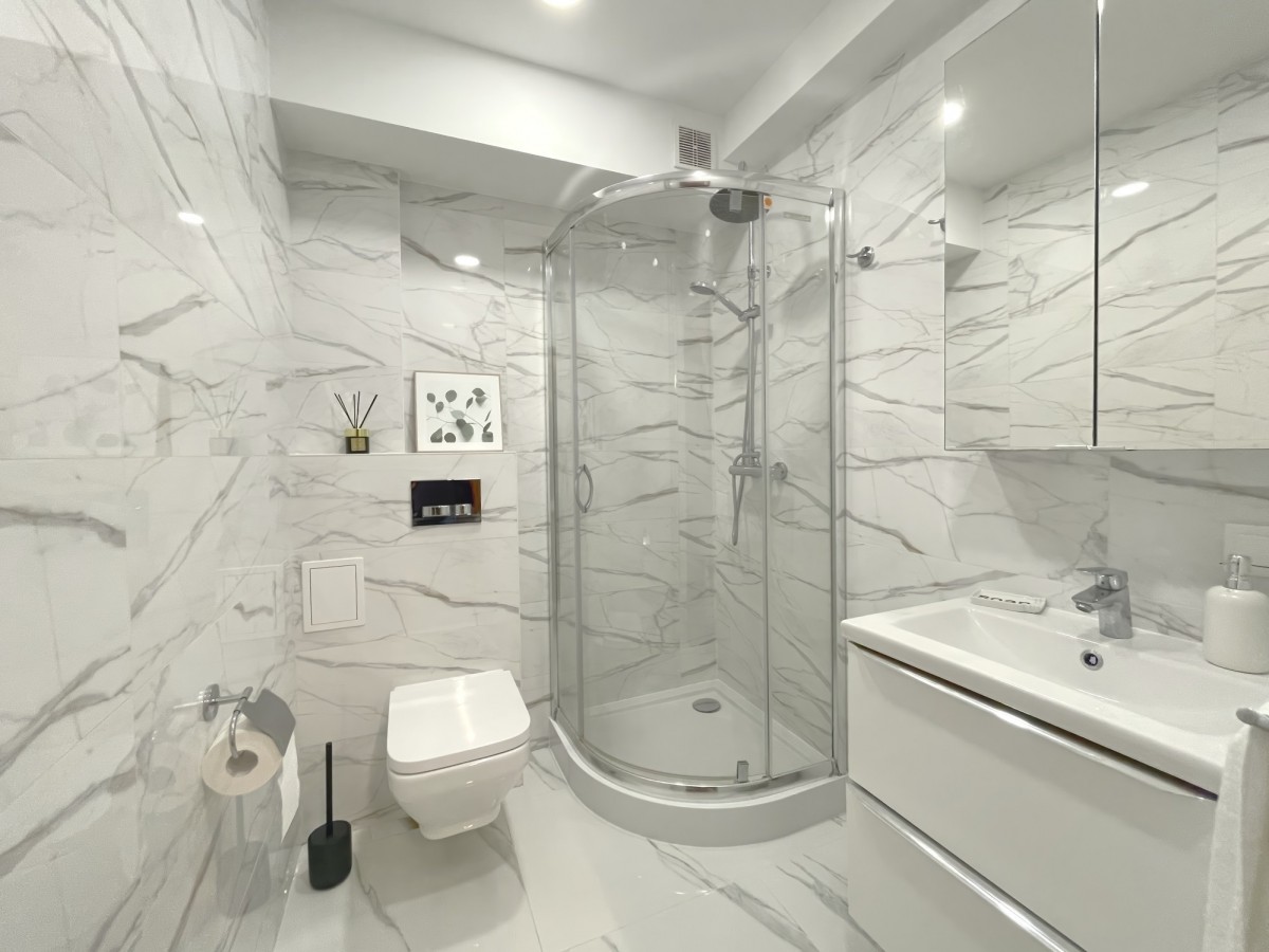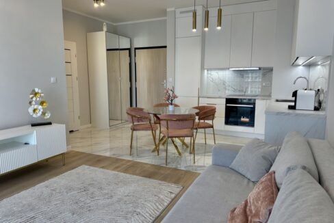 Mieszkanie składa się z przestronnego salonu, sypialni, oddzielnej kuchni oraz łazienki z kabiną prysznicową. Wnętrze jest ciepłe i przytulne, co sprawia, że od razu można poczuć się tu jak w domu. Kuchnia i łazienka w pełni funkcjonalne i gotowe do użytku.