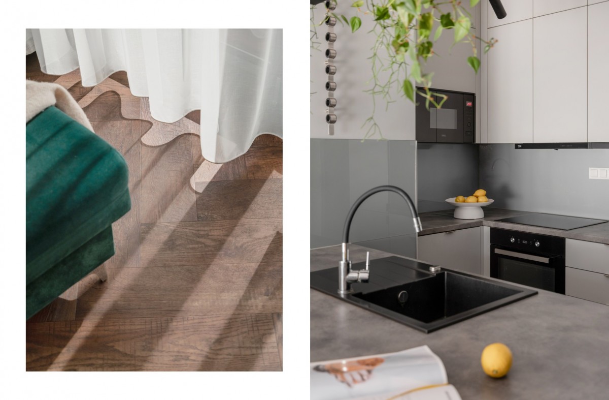 Część dzienna z salonem i aneksem kuchennym posiada zachodnią ekspozycję, dzięki czemu wnętrze jest przyjemnie nasłonecznione. Z salonu prowadzi wyjście na balkon z widokiem na zielone, spokojne patio, które zapewnia ciszę i prywatność.