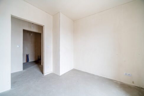 – pokój główny z aneksem kuchennym – jasny i przytulny, utrzymany w barwach bieli z elementami drewna. Znajduje się tu wygodna, rozkładana, welurowa kanapa w kolorze głębokiego granatu, stolik kawowy oraz komoda i regał z witryną. Ekspozycja okien w kierunku wschodnim zapewnia idealne doświetlenie wnętrza. Z pokoju można wyjść na sporej wielkości, ustawny balkon z widokiem na podwórko.
