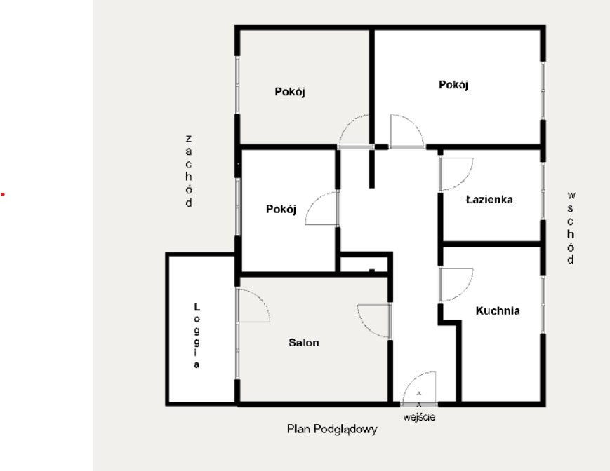 trzy oddzielne pokoje (ok. 12 m² i 12 m², 9 m²),