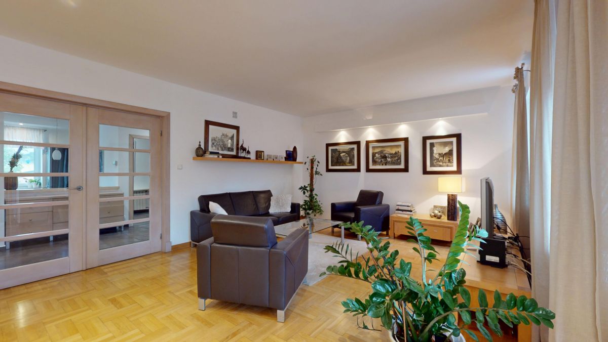 Na sprzedaż przestronny, dwupoziomowy apartament o powierzchni ok. 180 m², usytuowany na 3. piętrze z 4. pięter kameralnego budynku z 1993 r. Brak windy. Budynek wybudowany z wykorzystaniem solidnych materiałów, m.in.: pustaków ceramicznych i cegły klinkierowej. Szeroka klatka schodowa ze schodami wykonanymi z marmuru. Na piętrze tylko dwa mieszkania, w budynku jedynie 6 (sześć) lokali mieszkalnych, co czyni przestrzeń wspólną bardzo kameralną i prestiżową.