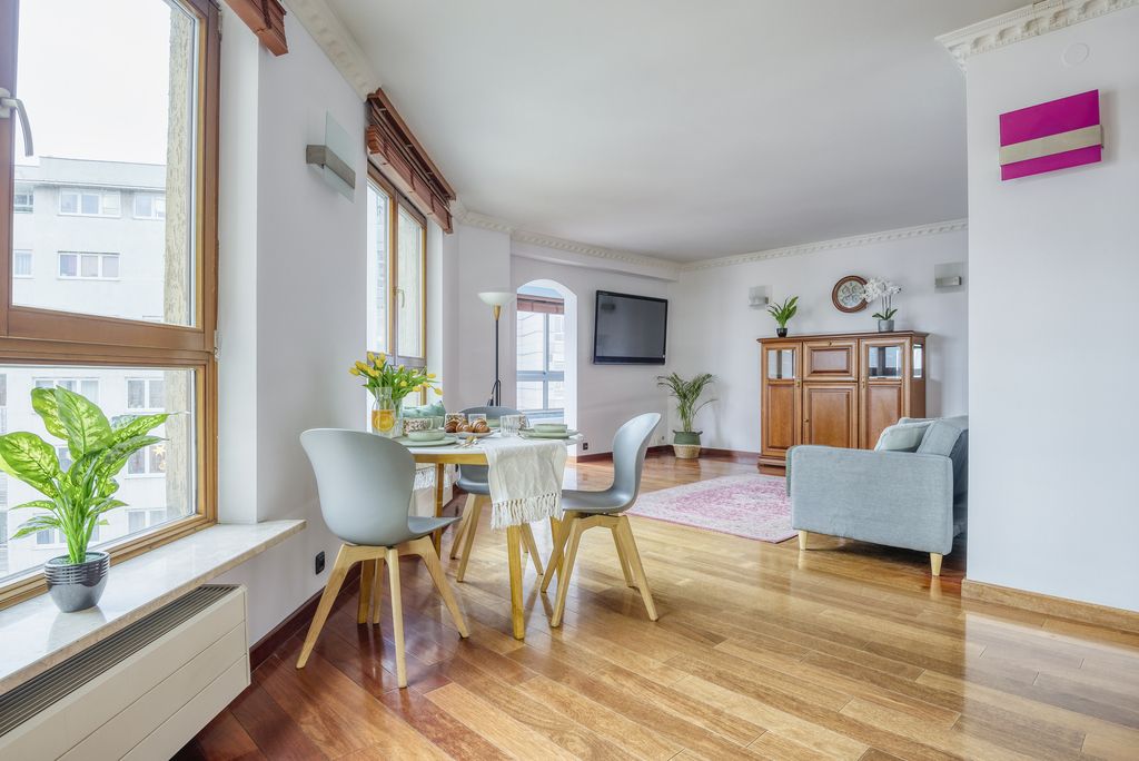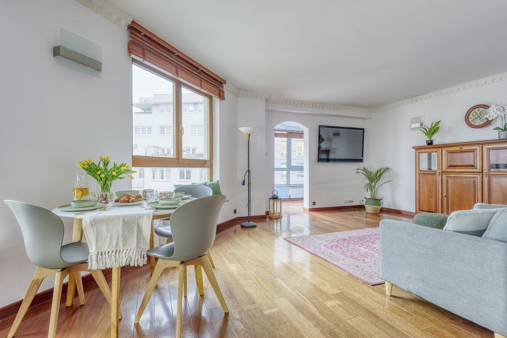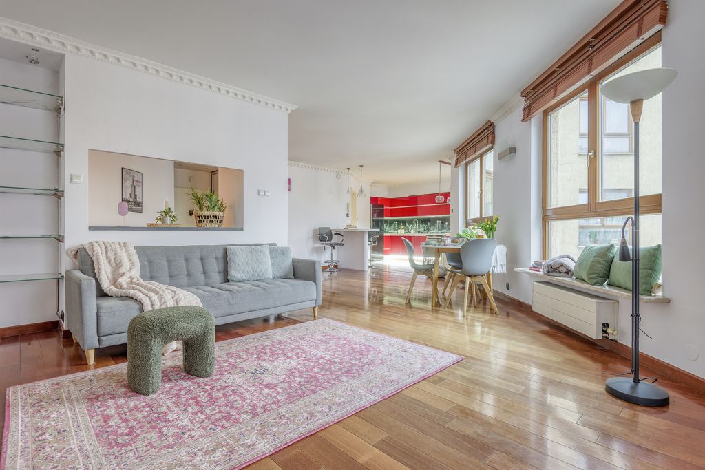 Usytuowany na 7. piętrze, oferuje panoramiczny widok na Warszawę oraz funkcjonalny układ pomieszczeń idealny dla rodziny lub osób pracujących zdalnie.
