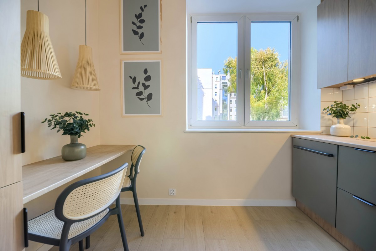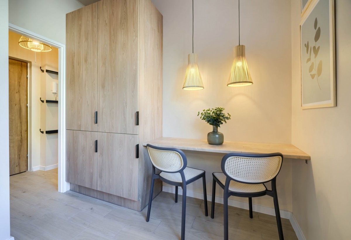 Wysoki standard wykończenia lokalu w stylu japandi połączonym z minimalistycznym.