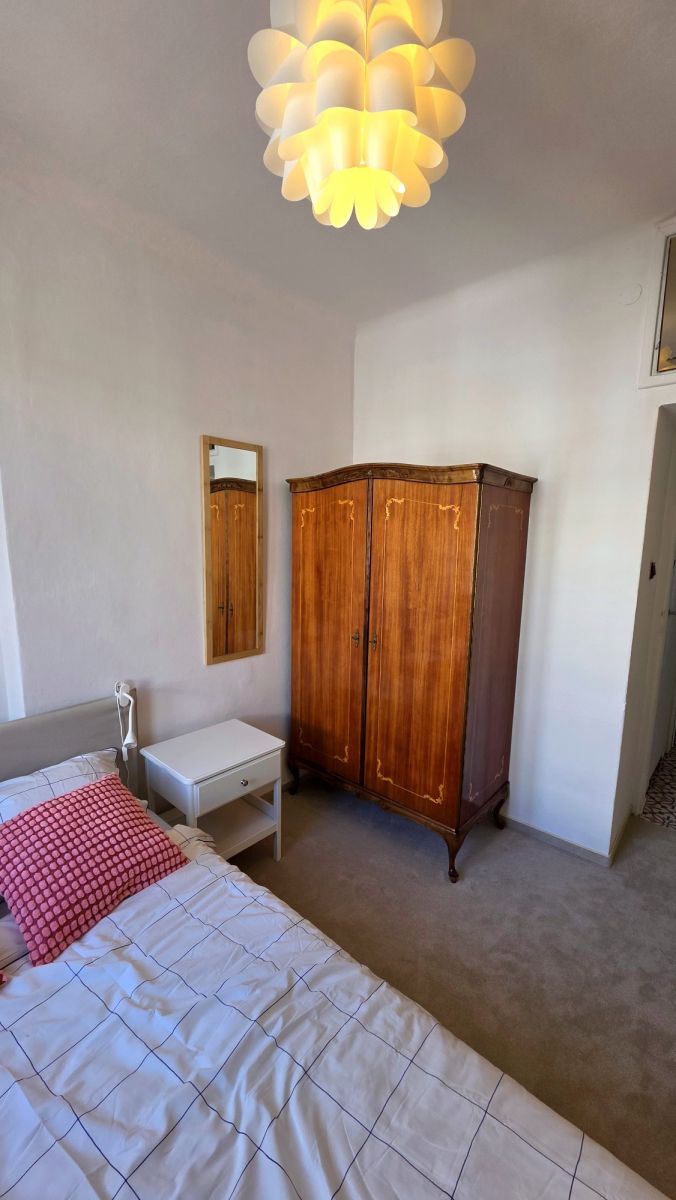 – obszernego, jasnego salonu z ekspozycja okien na południowy zachód i północny wschód (jedno okno typu francuskiego), wyposażonego w rozkładaną kanapę, fotel, stolik, lampę stojącą, komody, stolik telewizyjny i telewizor,